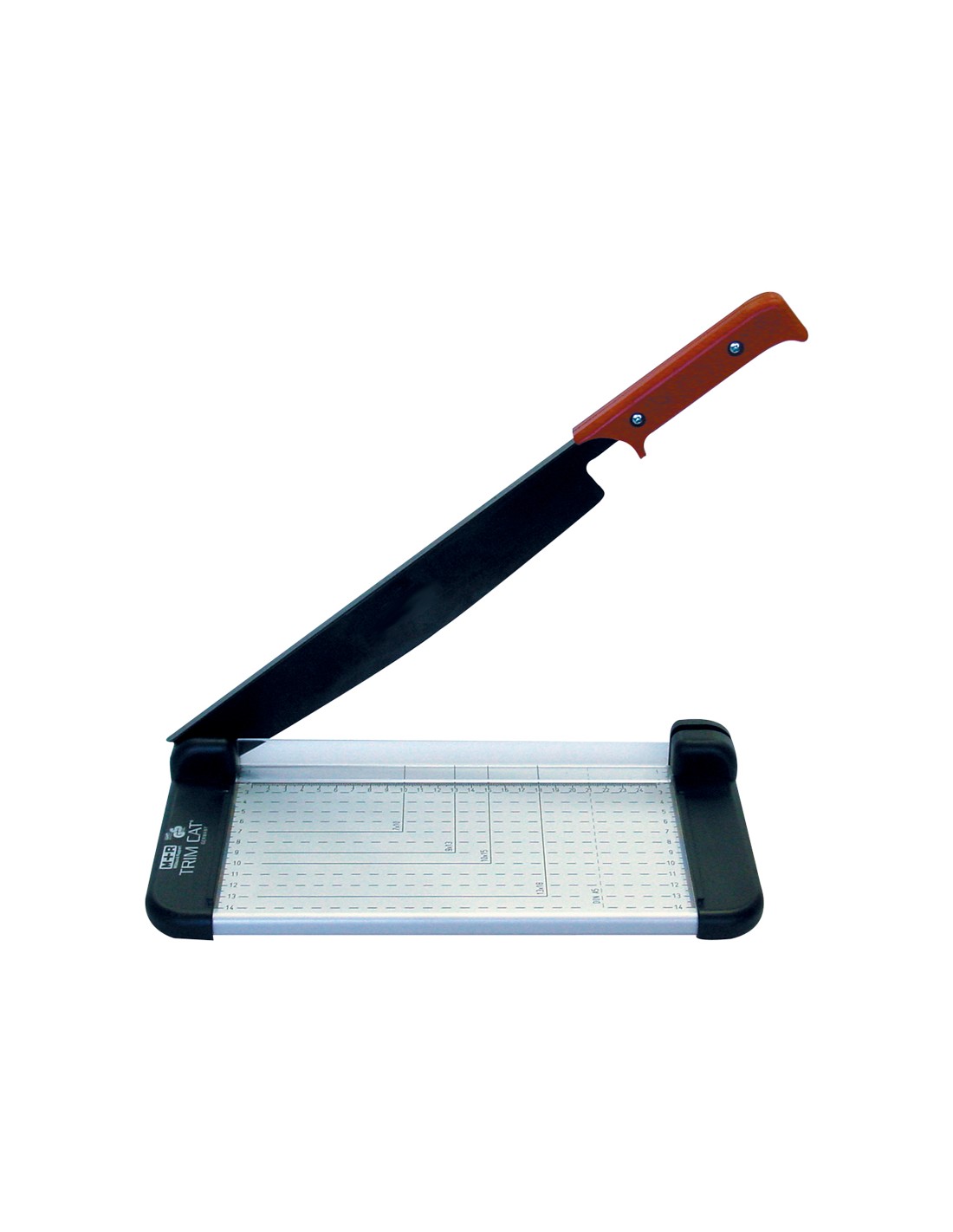 Máquina cortadora con base de alumnio. Robusta y con medidas grabadas en centímetros, pulgadas y resto de formatos habituales. Cuchilla de acero de gran calidad con filo cortado a láser. Con protección de seguridad para los dedos. Precisa y fácil de utilizar. Capacidad de corte 8 hojas. Disponible en varios tamaños con diversas longitudes de corte.