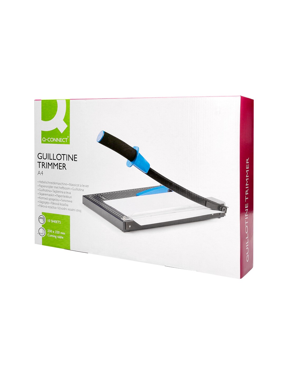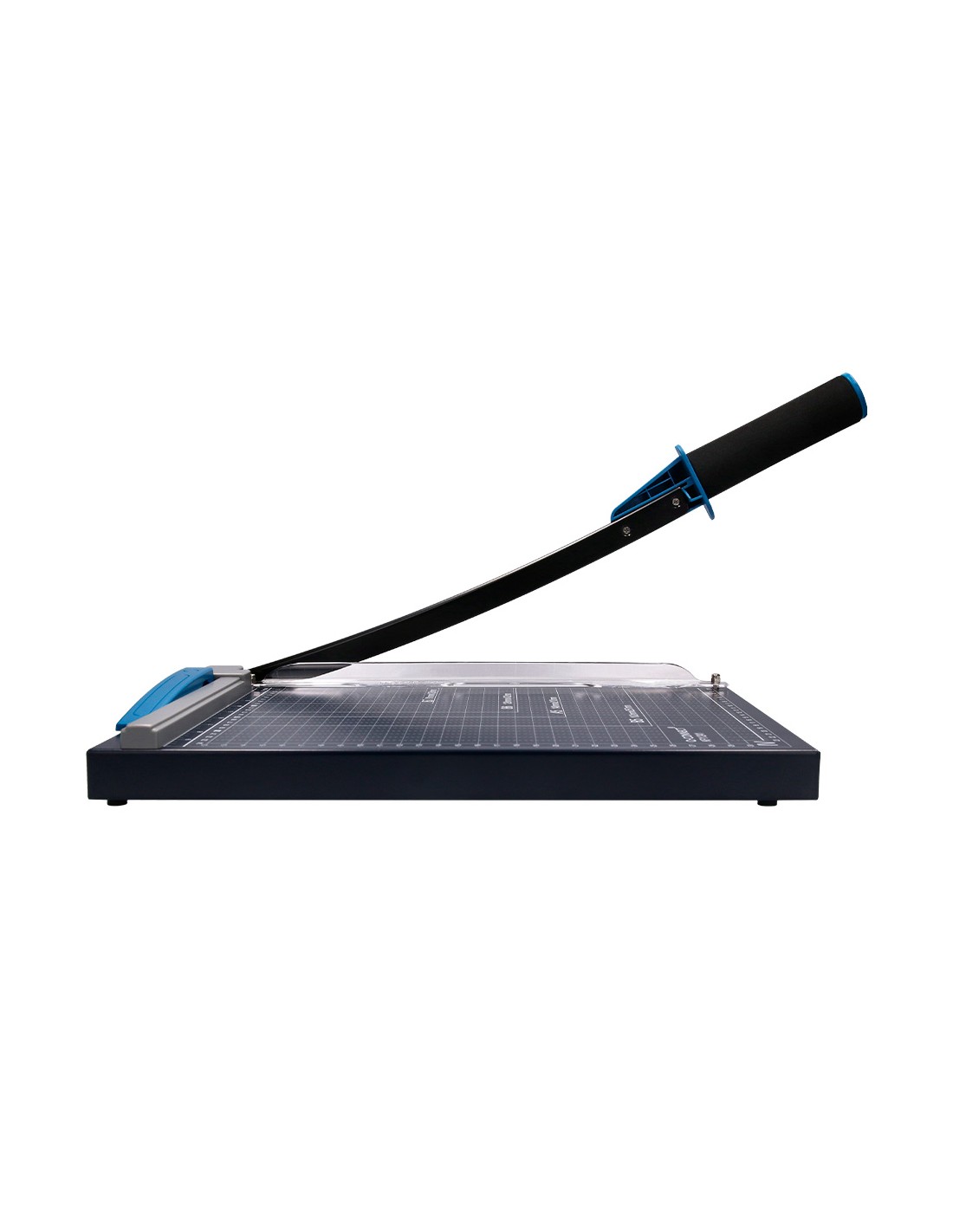 Máquina cortadora con base de metal. Medidas grabadas en la base. Perfecta para la oficina doméstica o para escritorio. Su cuchilla asegura un corte preciso y limpio pero no es muy filosa y se puede tocar con las manos. Con empuñadura ergonómica. Corta hasta DIN A4. Capacidad de corte hasta 10 hojas de papel de 80 g/m². Longitud de corte 320 mm. Medidas 250 x 320 mm.