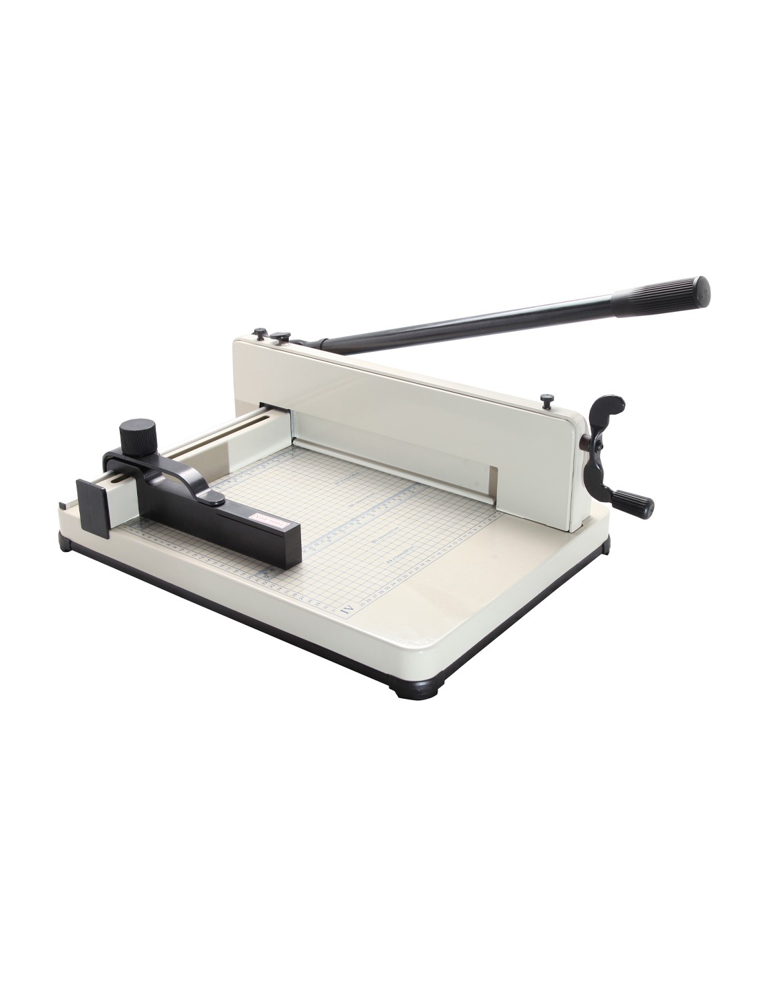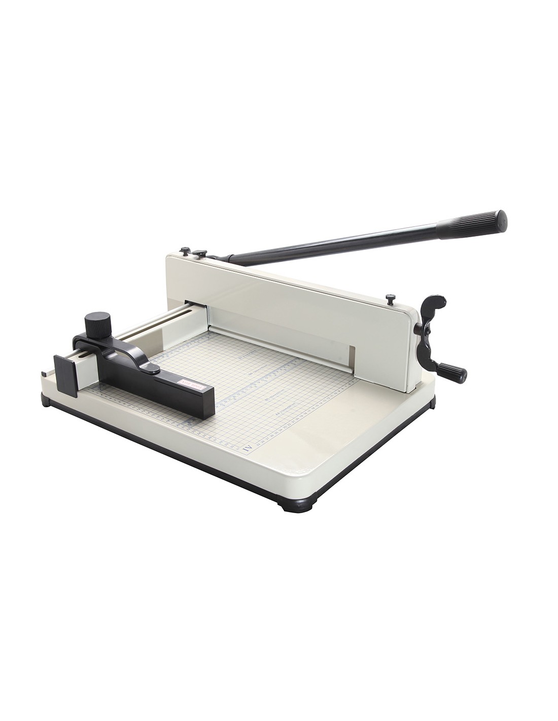 Guillotina manual profesional con capacidad para 400 hojas. Longitud del corte 330 mm. Espesor de corte 40 mm. Base metálica graduada. Con diferentes sistemas de protección el cortador tiene un bloqueo de seguridad, además, la cuchilla está cubierta por una caja de seguridad para evitar cortes. Medidas 600 x 435 x 250 mm.