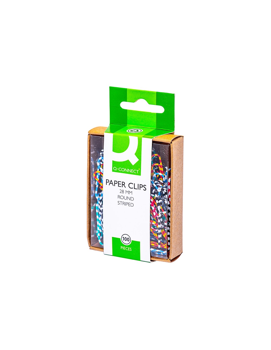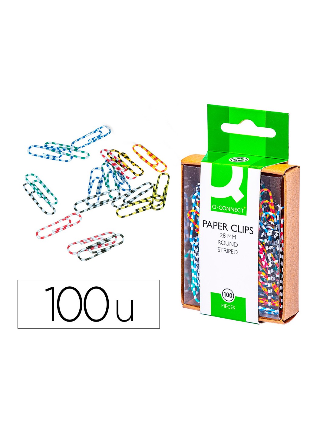Clips colores rayados q-connect 28 mm caja de 100 unidades colores surtidos