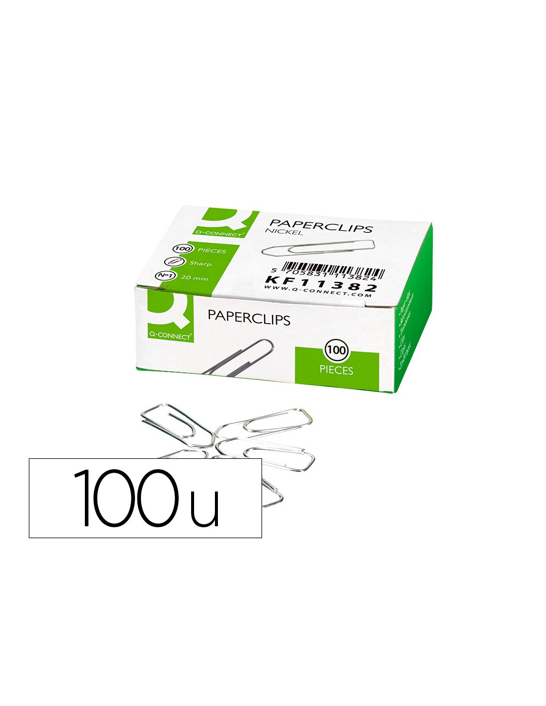 Clips niquelados q-connect n 1 picos 20 mm punta caja de 100 unidades