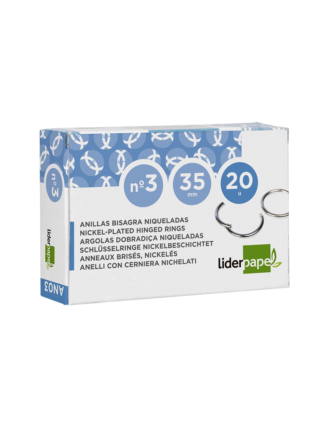 Anilla bisagra liderpapel niquelada n.3 diametro 35 mm caja de 20 unidades