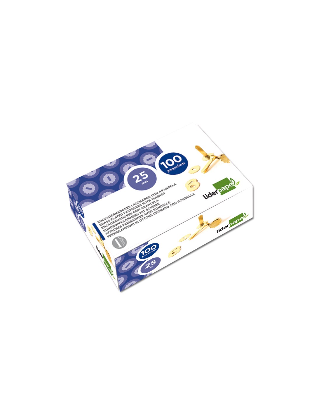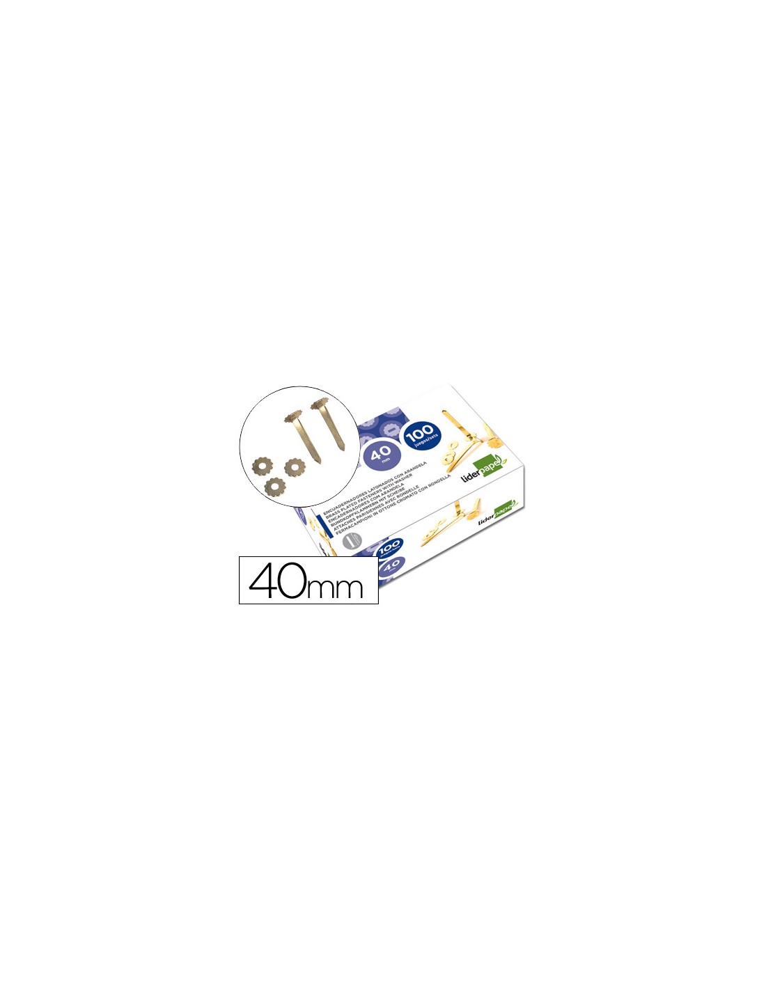 Encuadernadores liderpapel latonados con arandela 40 mm caja de 100 unidades