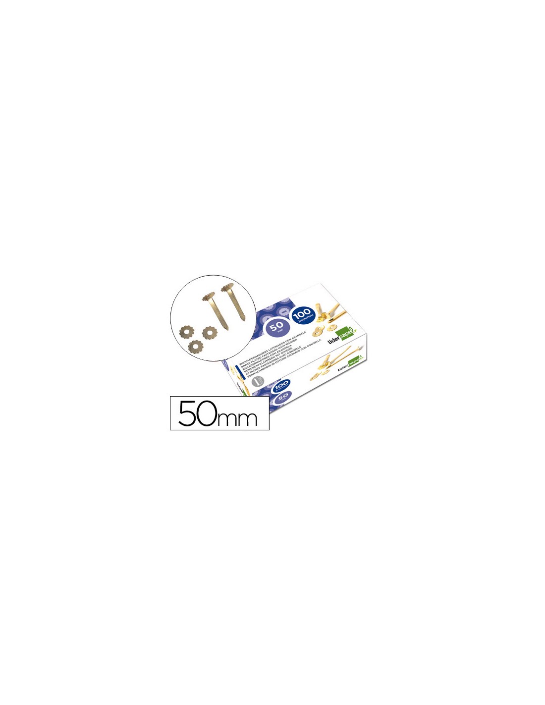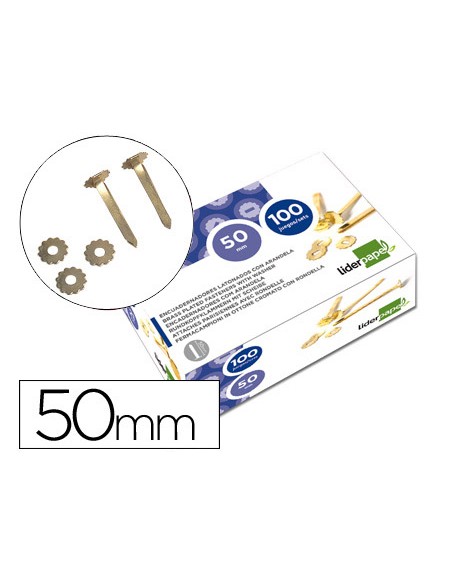 Encuadernadores liderpapel latonados con arandela 50 mm caja de 100 unidades