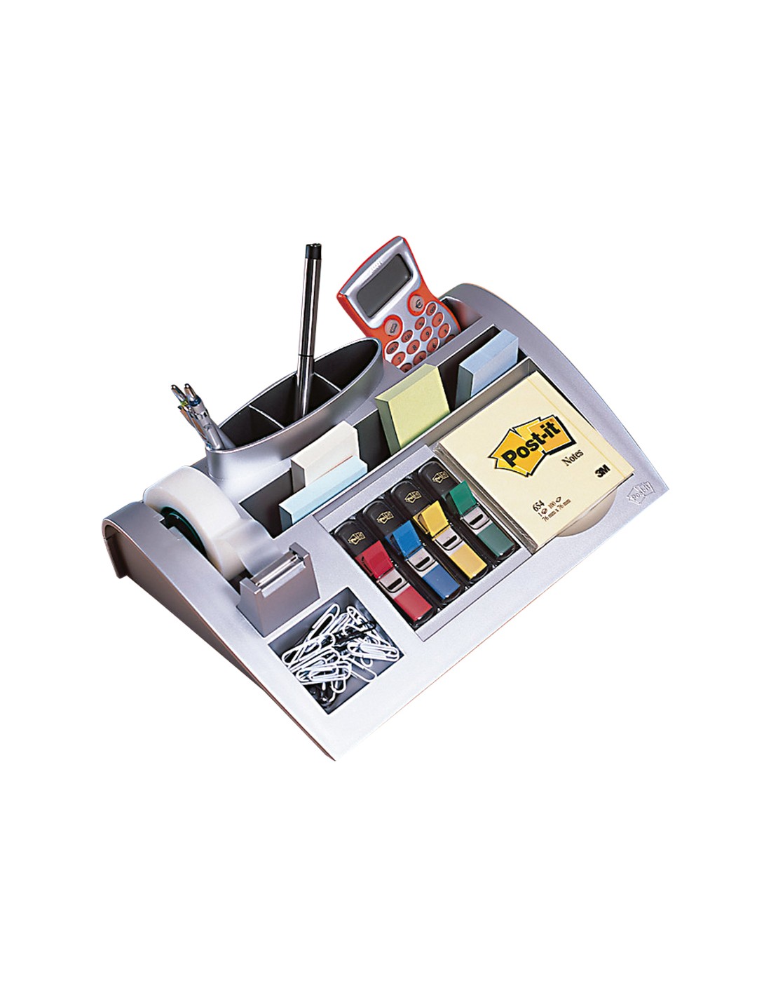 Organizador de sobremesa 3m c-50 incluye bloc de notas rollo de cinta scotch 4 dispensadores de banderitas