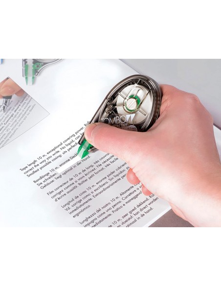 Cinta correctora con diseño ergonómico y tecnología de aplicación lateral para una corrección especialmente cómoda y precisa. Cinta PET resistente al desgarro, aplicable hasta el último milímetro. Sin tiempo de secado, permite escribir encima inmediatamente y con gran pulcritud tras su aplicación. Carcasa hecha con plástico 100% reciclado. Ancho de la cinta 4,2 mm. Largo 10 m.