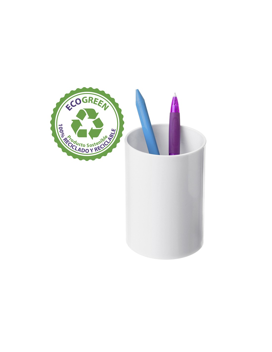 Portalápices sostenible en colores pastel. Fabricado con materias primas 100% recicladas y reciclables, certificadas según la normativa europea EUCERPLAST que garantiza la procedencia y el origen. Gran capacidad y estabilidad para tener los bolígrafos y lápices ordenados y siempre accesibles. No incluye accesorios. Fabricación española. Medidas 75 x 105 mm.