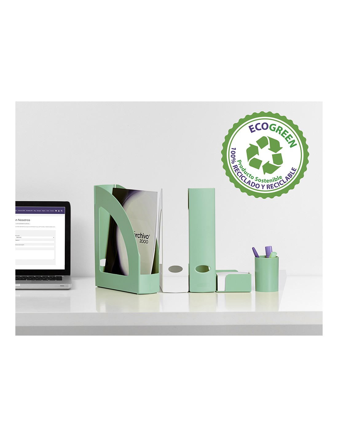 Cubilete portalapices archivo 2000 verde pastel opaco plastico 100% reciclado diametro 75 mm alto 105 mm