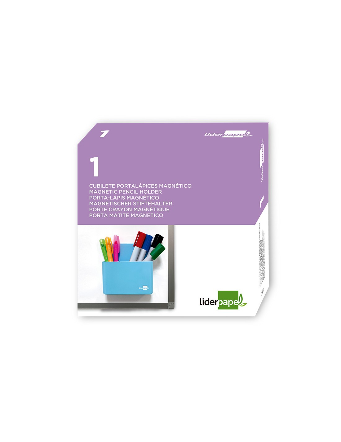 LIDERPAPELCubilete portalapices liderpapel azul claro opaco plastico magnetico 125x75x40 mm