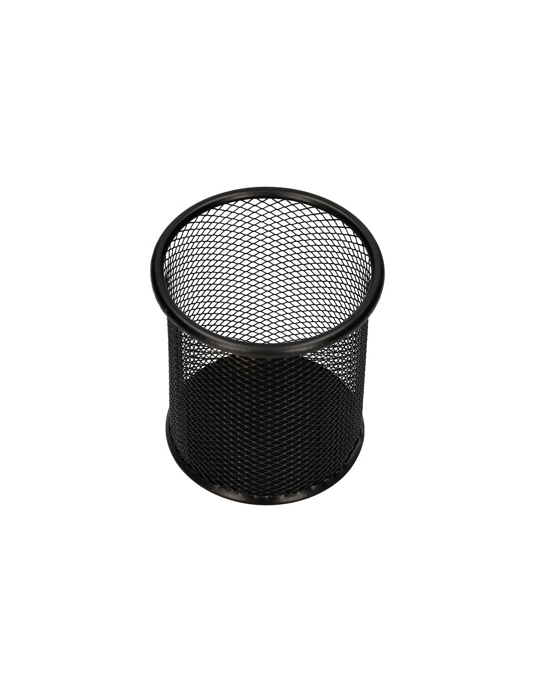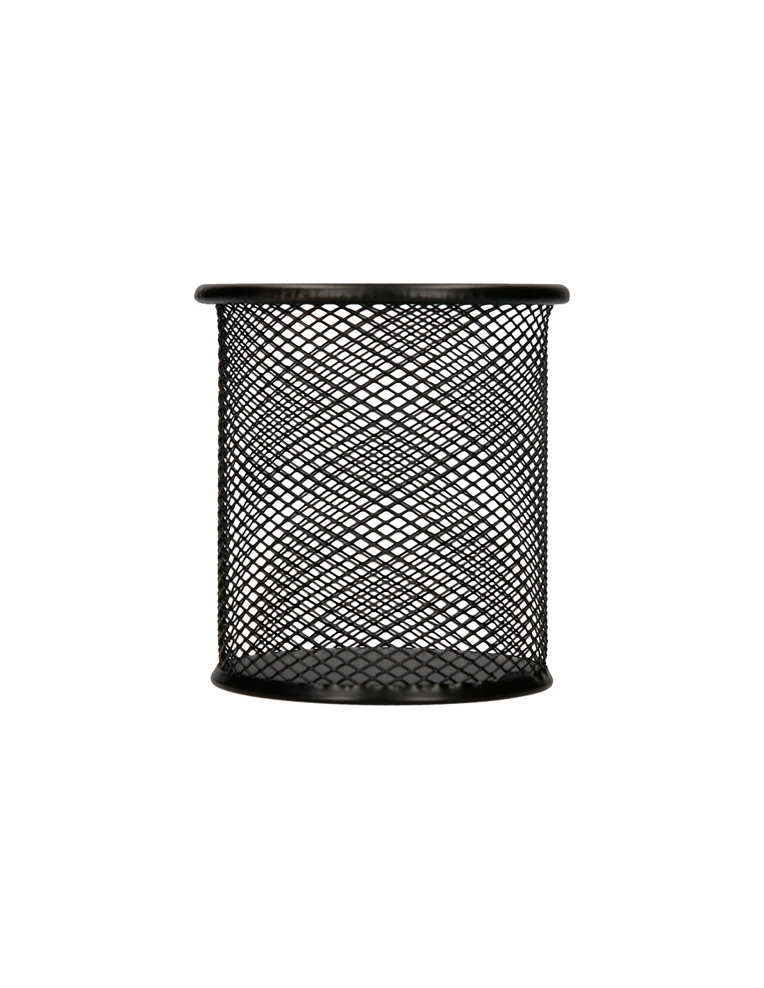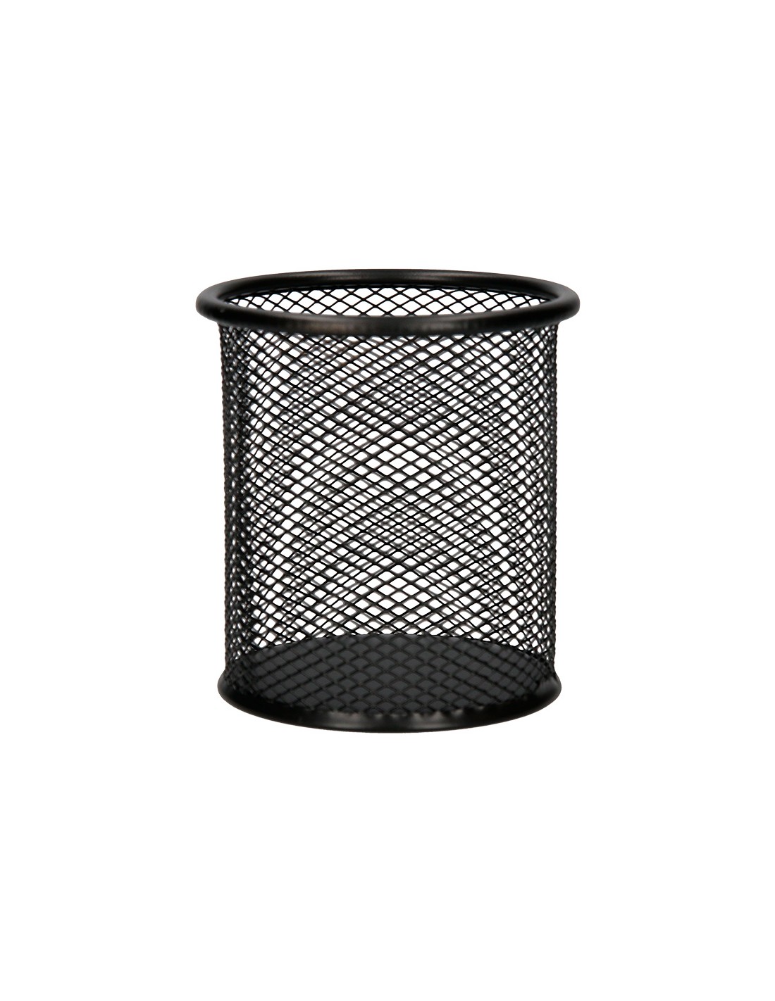 Cubilete redondo para alojar bolígrafos, lápices, rotuladores... Metálico de rejilla. No incluye accesorios. Medidas Ø86 x 105 mm.
