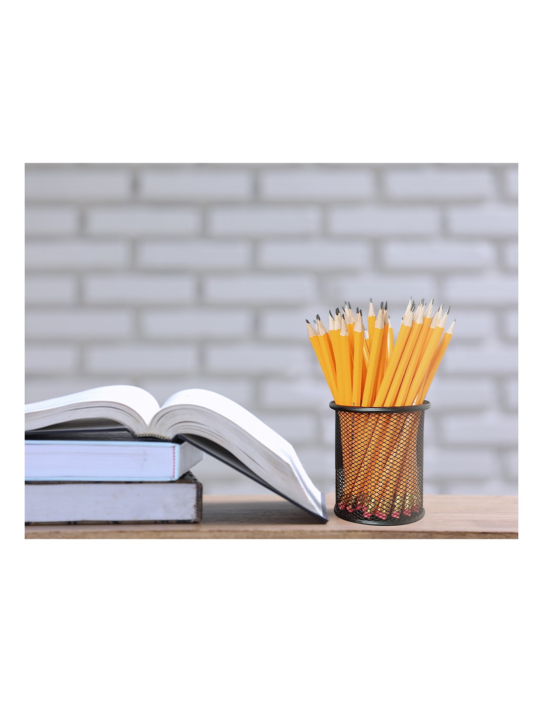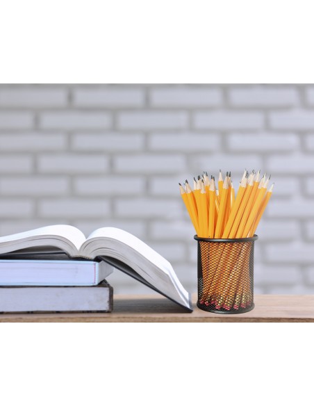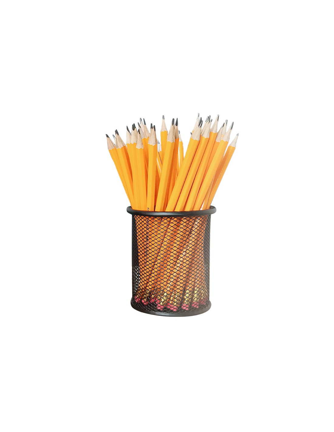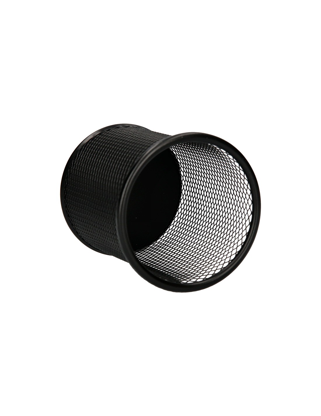 Cubilete redondo para alojar bolígrafos, lápices, rotuladores... Metálico de rejilla. No incluye accesorios. Medidas Ø86 x 105 mm.
