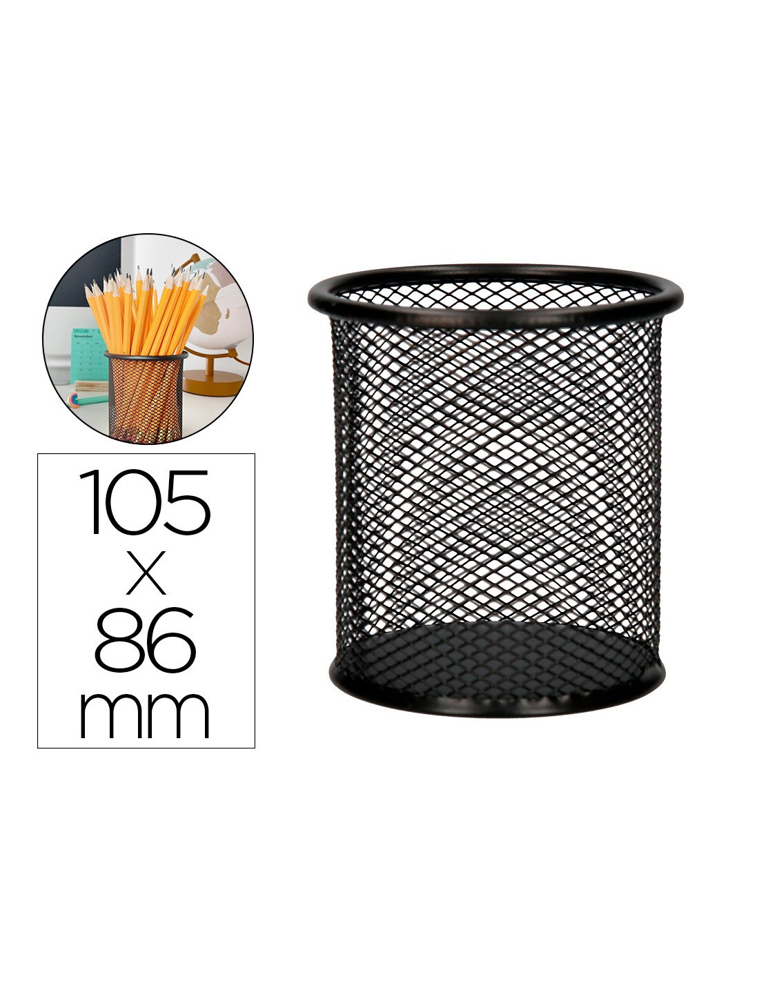 Cubilete portalapices q-connect negro metal redondo rejilla diametro 86 mm alto 105 mm