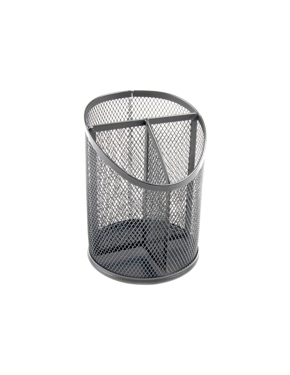 Cubilete portalapices q-connect plata metal redondo rejilla con 3 compartimentos diametro 110 mm alto 147 mm
