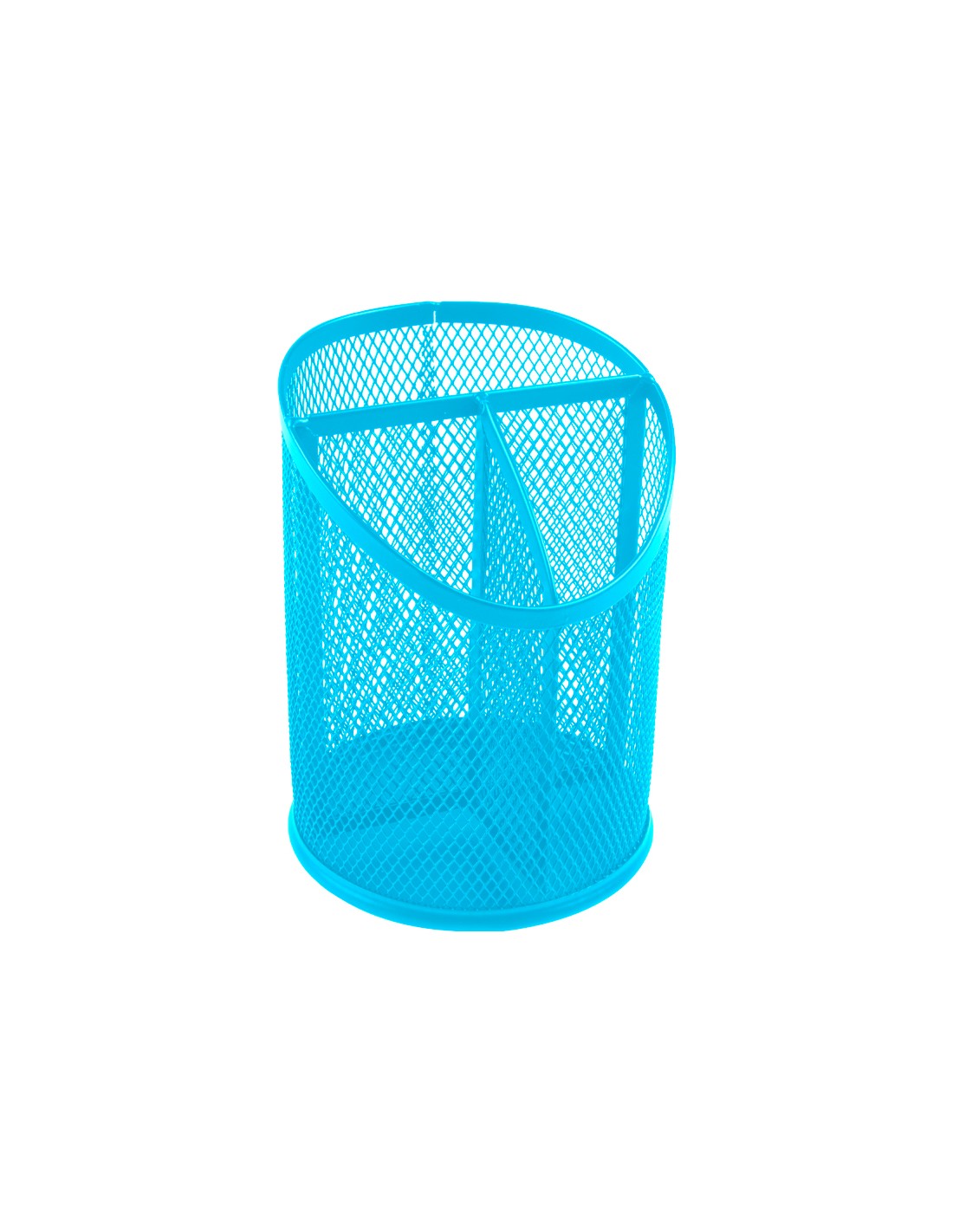 Cubilete portalapices q-connect turquesa metal rejilla con 3 compartimentos diametro 110 mm alto 147 mm