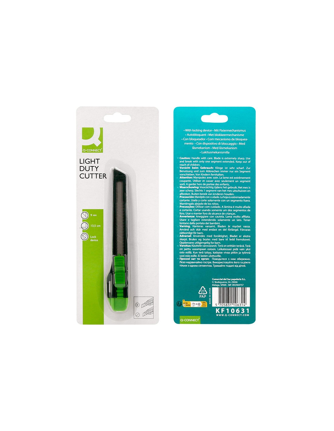Cuter q-connect plastico estrecho con asa para colgar cuchilla 9 mm xd-07 blister 1 unidad