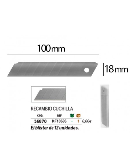Repuesto cuter q-connect ancho para modelos kf10632/kf10635/kf10937/kf10634 cuchilla 18 mm blister 12 unidades