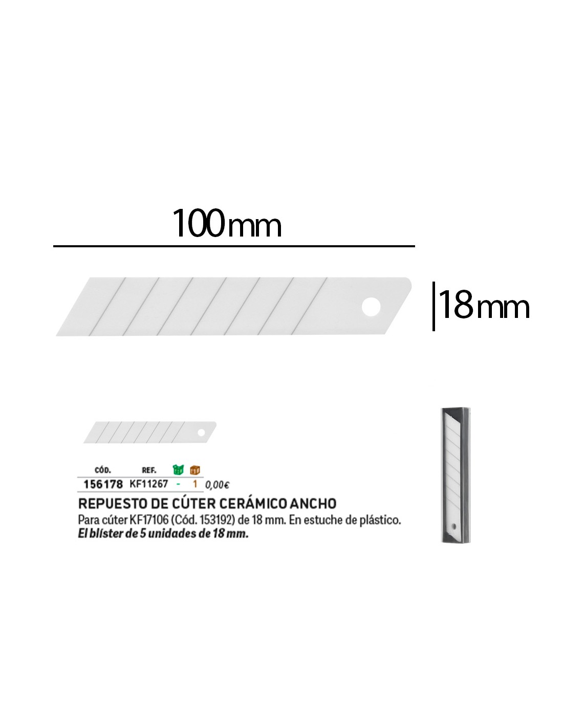 Repuesto cuter q-connect ancho para modelos kf17106/kf14387 cuchilla ceramica 18 mm blister 5 unidades