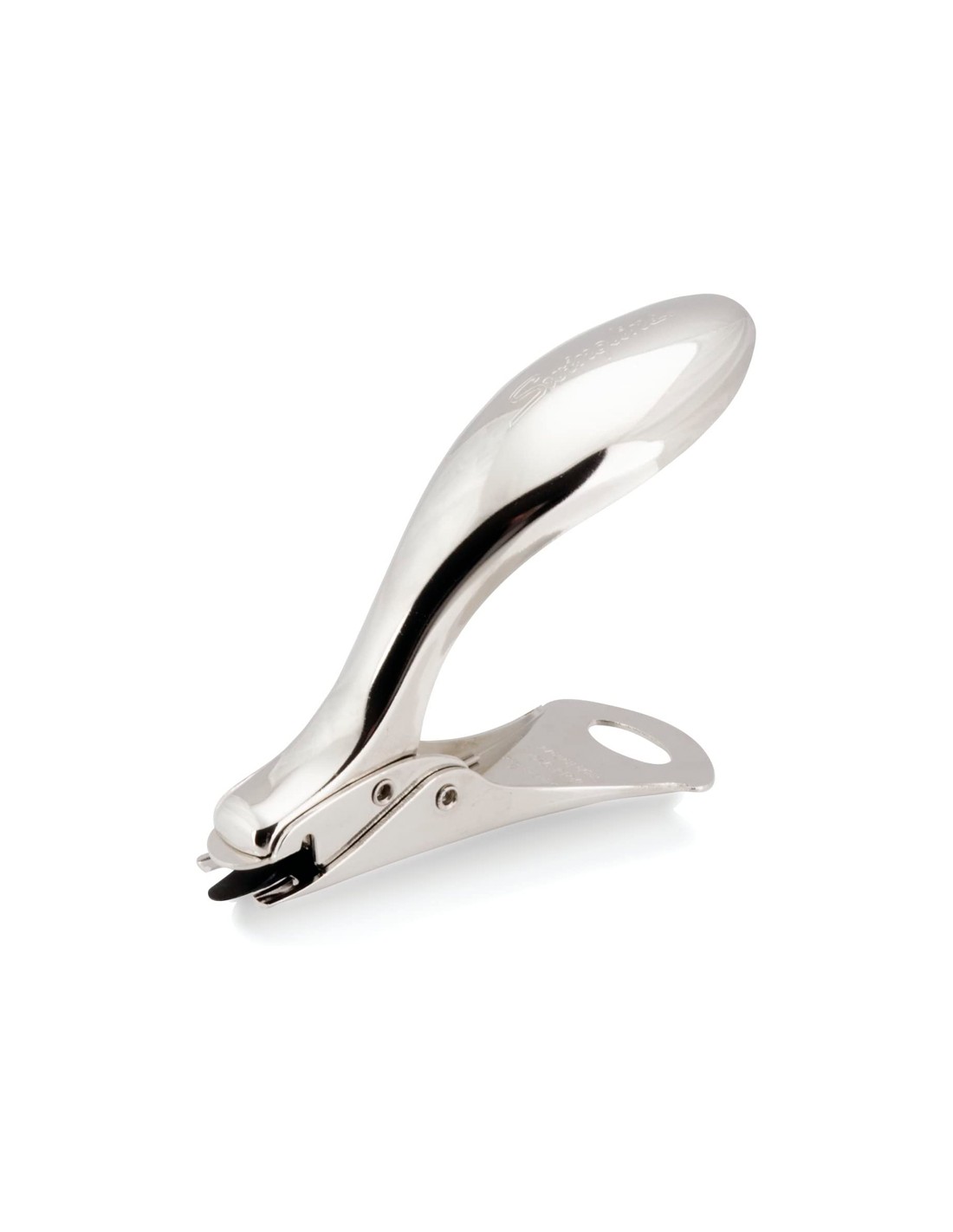 Extraegrapas de tenaza fabricado en metal con acabado en acero inoxidable cromado. Robusto y profesional, permite extraer grapas de documentos de hasta 160 hojas, por lo que resulta ideal para uso intensivo. Garantía de 2 años. Medidas 55 x 86 x 140 mm.