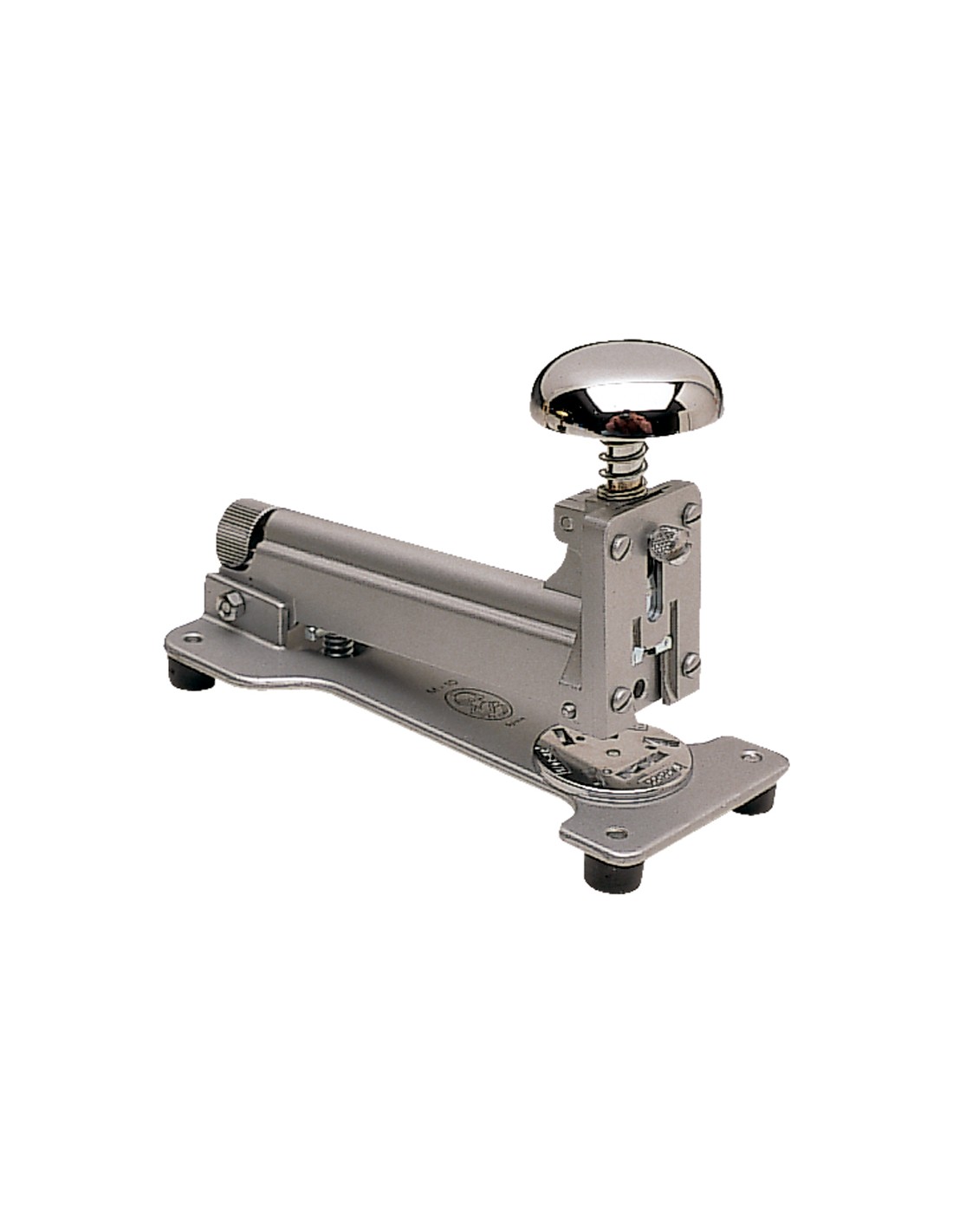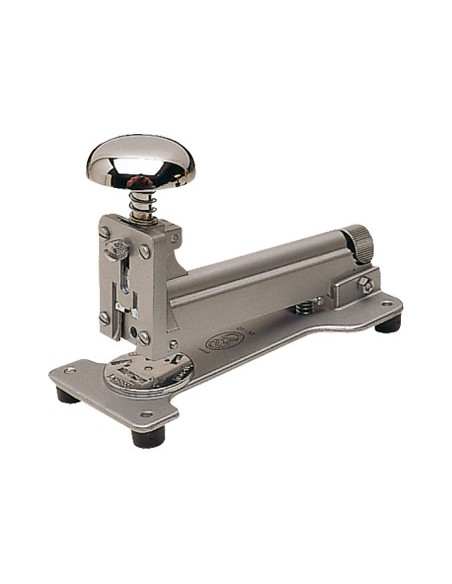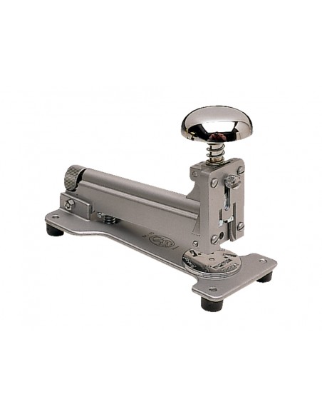 Fabricada en acero pintado. Usa grapas nº 22/6 y 24/6. Longitud del grapado a 80 mm del borde de la hoja. Carga 2 peines (100 grapas). Capacidad de grapado 25 hojas. Carga trasera. Dispone de tornillo antiatascos. Color gris. Longitud de la base 130 mm. Medidas 57 x 95 x 132 mm.