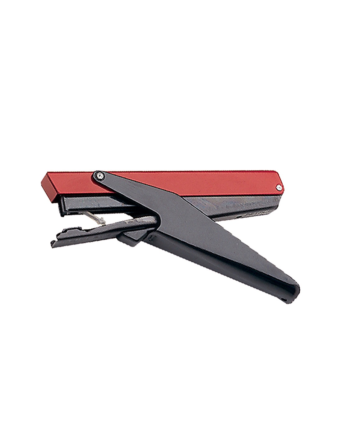 Minitenaza metálica. Usa grapas nº 202. Longitud del grapado a 33 mm del borde de la hoja. Carga 2 peines (100 grapas). Color rojo y negro. Longitud de la grapadora 100 mm. Medidas 12 x 55 x 100 mm.