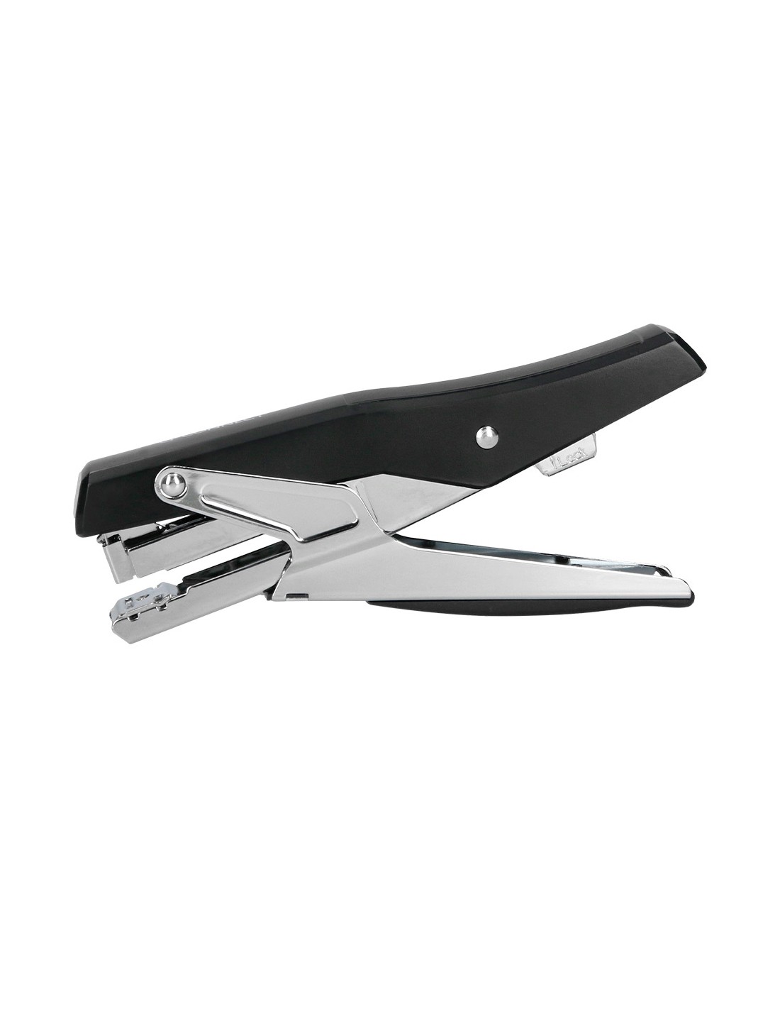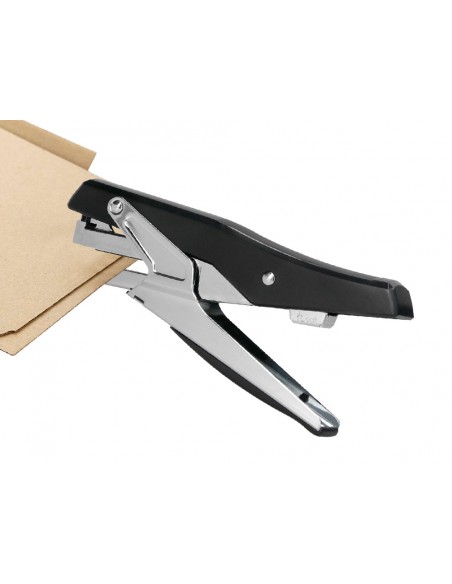 Grapadora de tenaza metalizada de alta calidad y resistencia. Carga trasera. Grapado plano.
