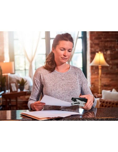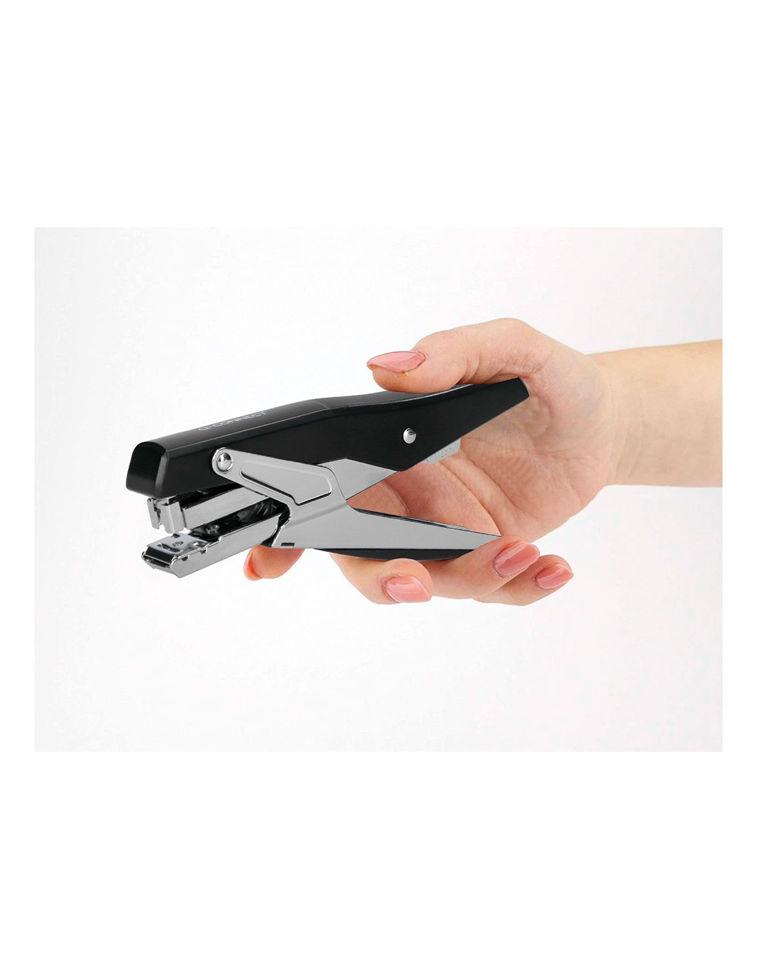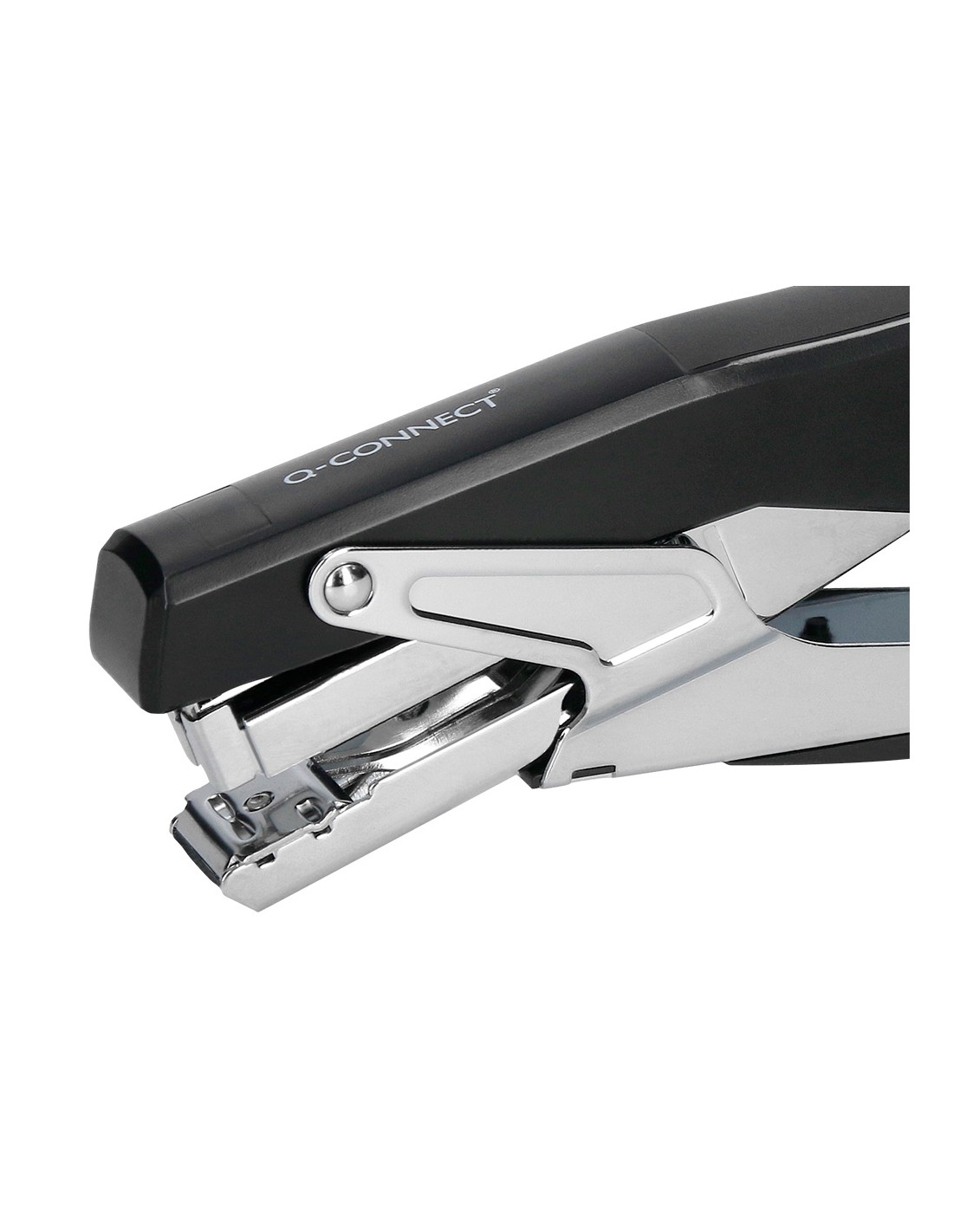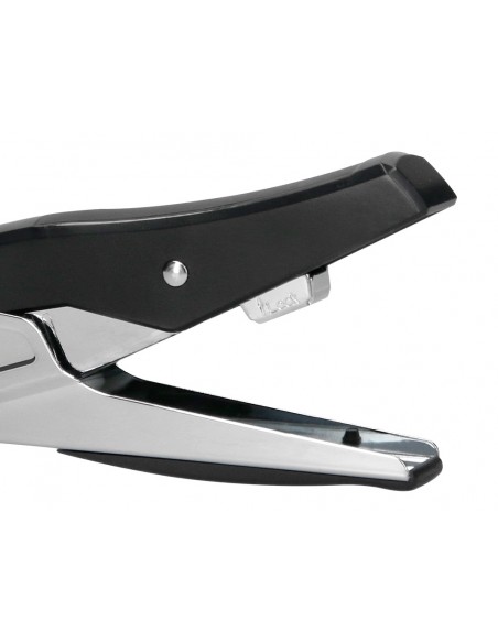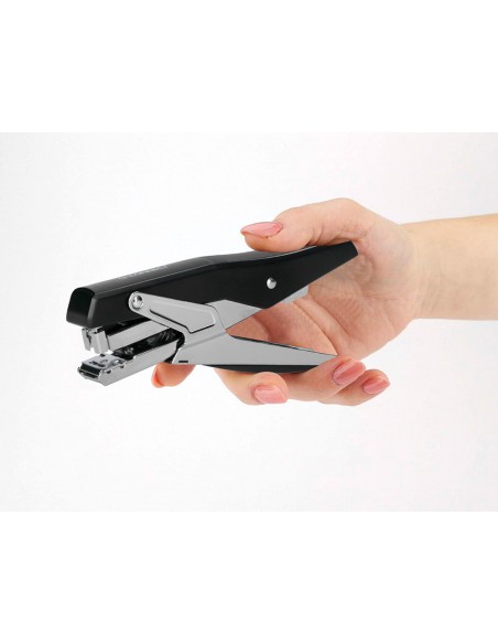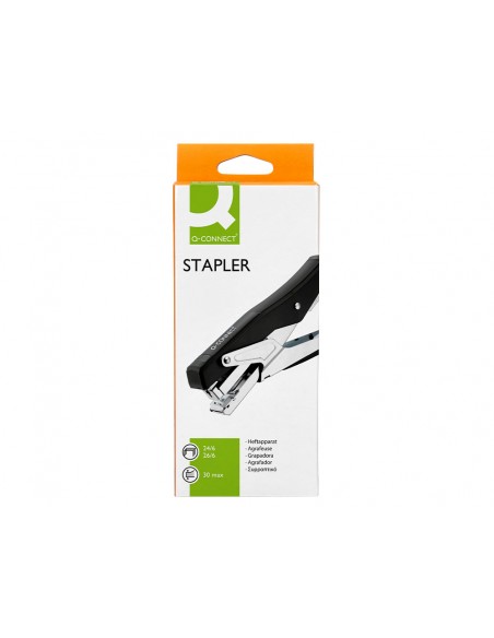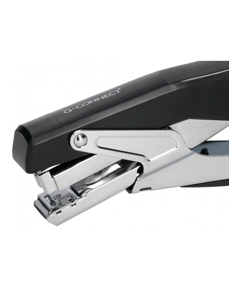 Grapadora q-connect metalizada y negra de tenaza tacto suave capacidad 25 hojas usa grapas 24/6 y 26/6