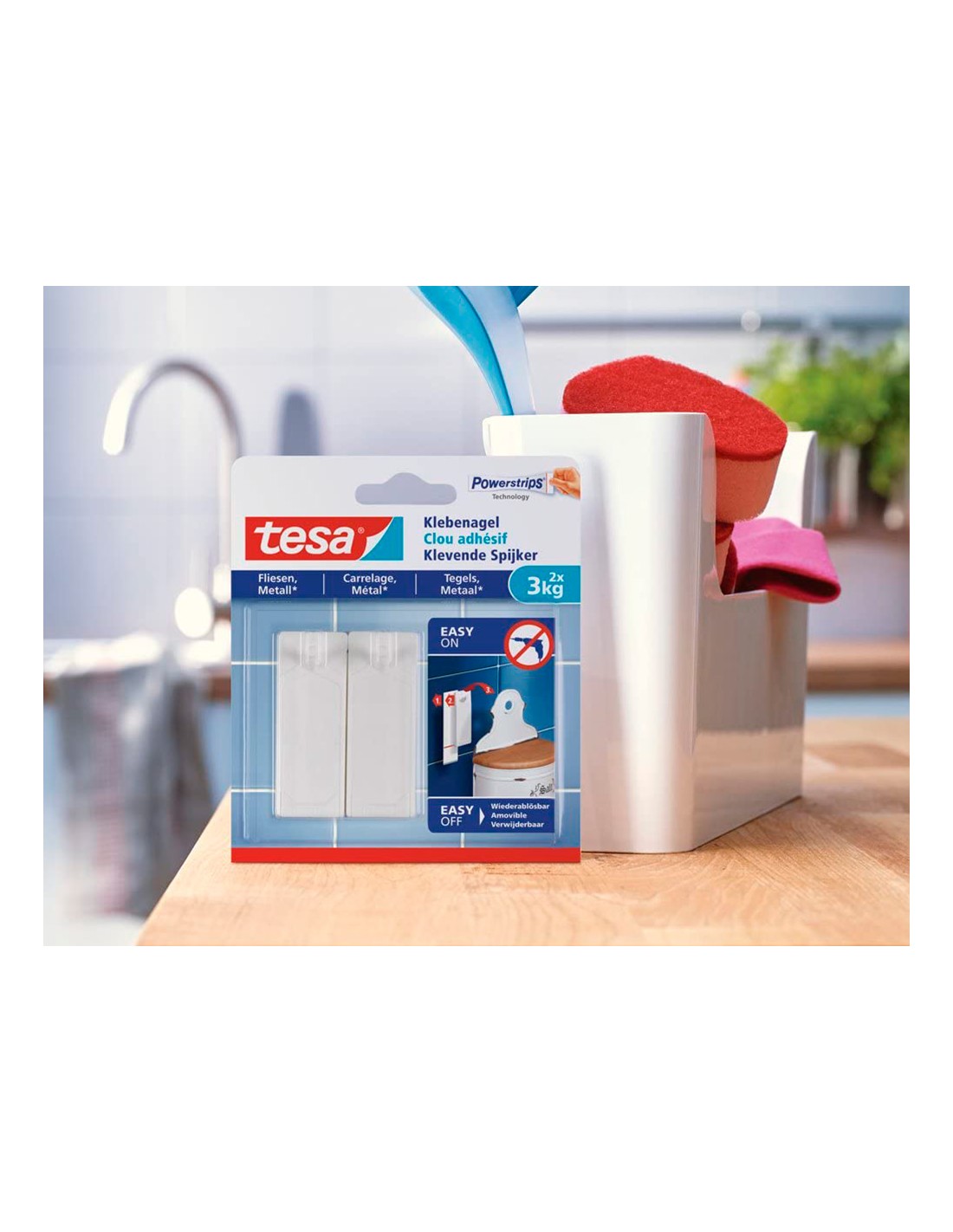 El clavo adhesivo tesa® para azulejos y metal sostiene hasta 2 kg cada uno, y con dos obtendrá el doble de sujeción. Están especialmente diseñados para adherirse a las superficies lisas y sólidas como azulejos, metales y vidrio. Es un modo excelente de colgar adornos y utensilios de cocina sin dañar las superficies. Lo mejor es esto la tecnología Powerstrips® permite retirar el clavo adhesivo cuando quiera, sin dejar ni rastro en la superficie. Para reutilizarlos solo necesita la correspondiente tira adhesiva.