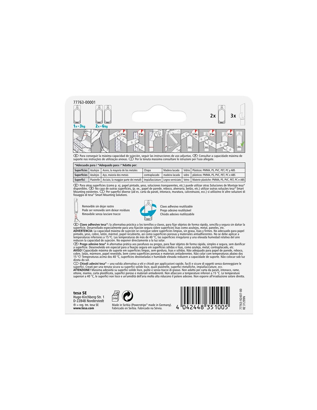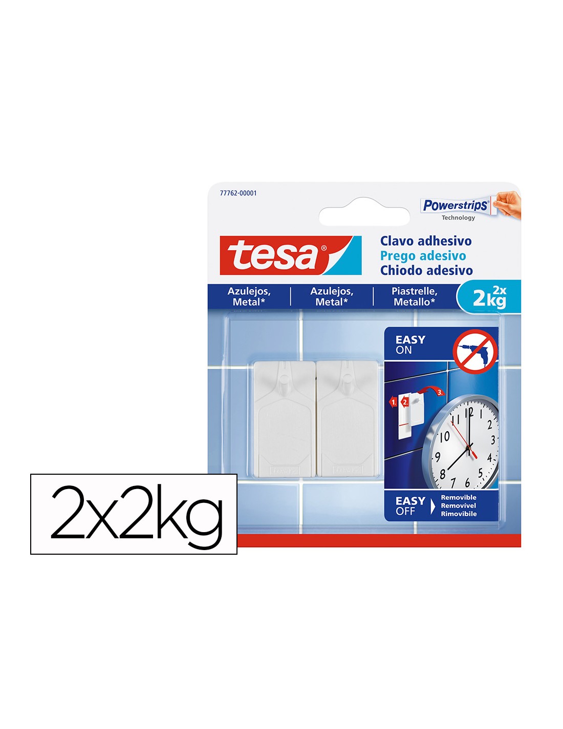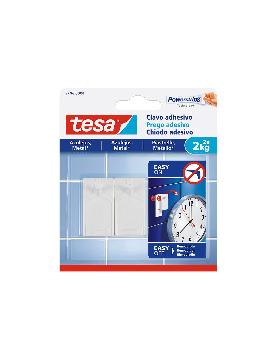 Clavo autoadhesivo tesa sujecion hasta 2 kg uso azulejos removible blister de 2 unidades