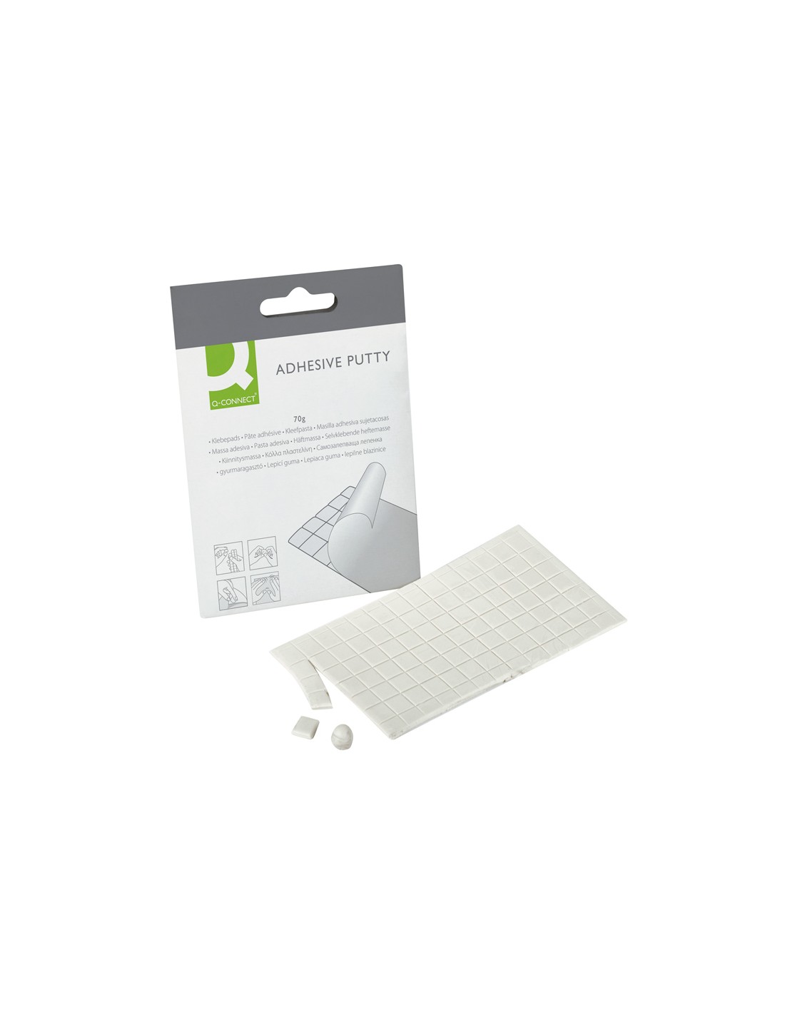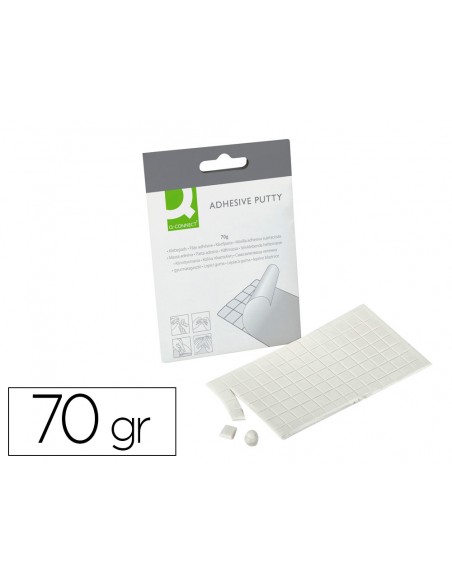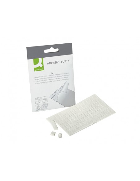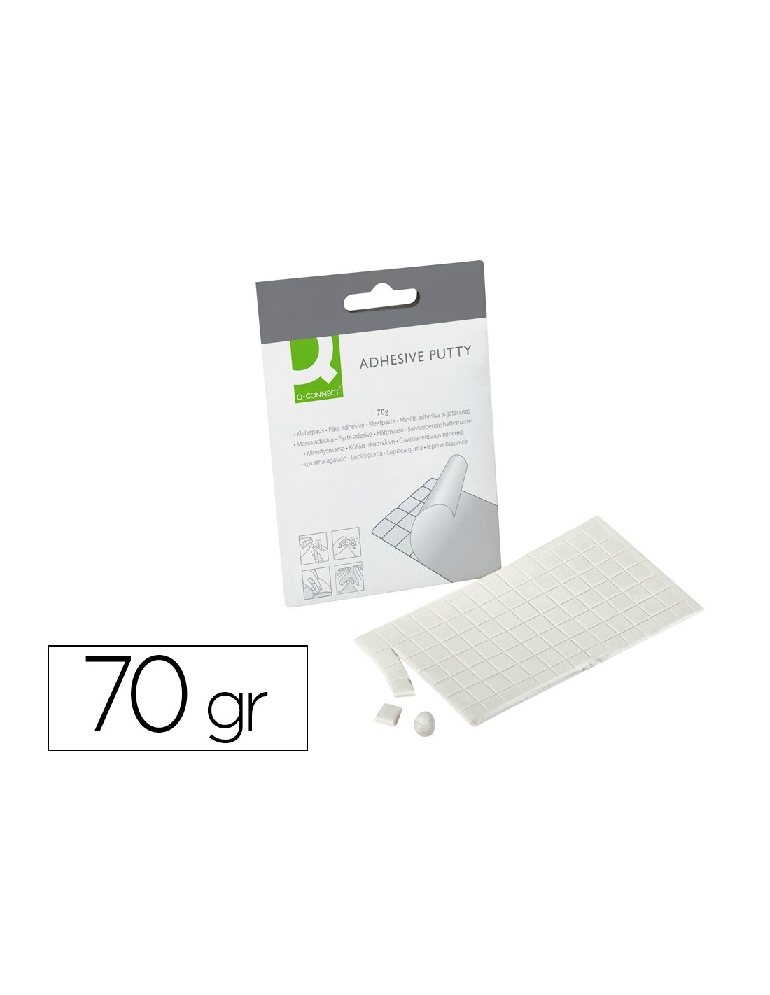 Masilla adhesiva precortada de quita y pon con múltiples aplicaciones. Para fijar cosas de poco peso en todas partes. Sustituye a la cinta adhesiva, grapas y chinchetas. Sin agujerear. No deja huella cuando se retira, puede volverse a usar. Contenido 70 g.
