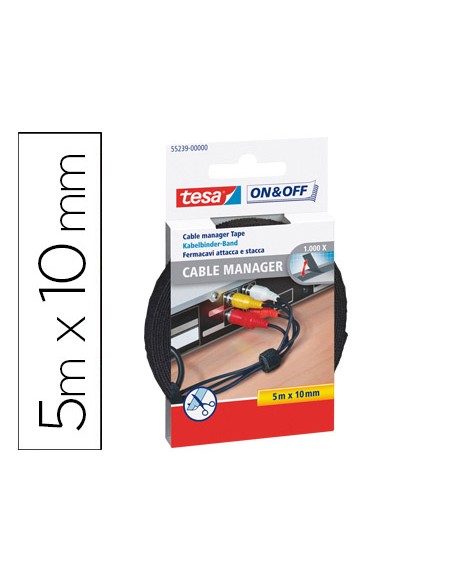 Cinta de velcro para enlazar y organizar cables eléctricos y accesorios. Reutilizable. Se puede abrir y cerrar hasta 1000 veces. Medidas 10 mm x 5 m.