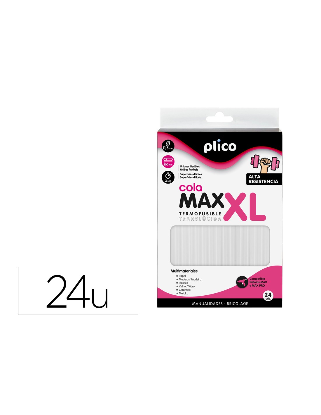Barra termofusible plico cola extrafuerte max xl 11,5 mm de diametro x 200 mm de alto blister de 24 unidades