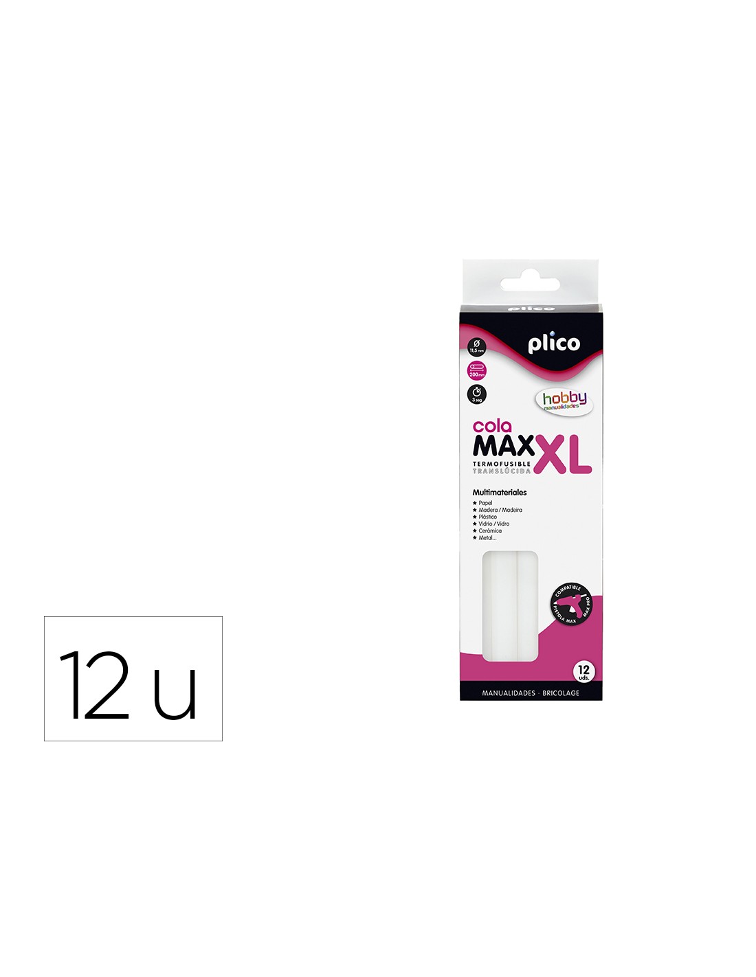 Barra termofusible plico cola max xl baja temperatura 11,5 mm de diametro x 200 mm de alto blister de 12 unidades