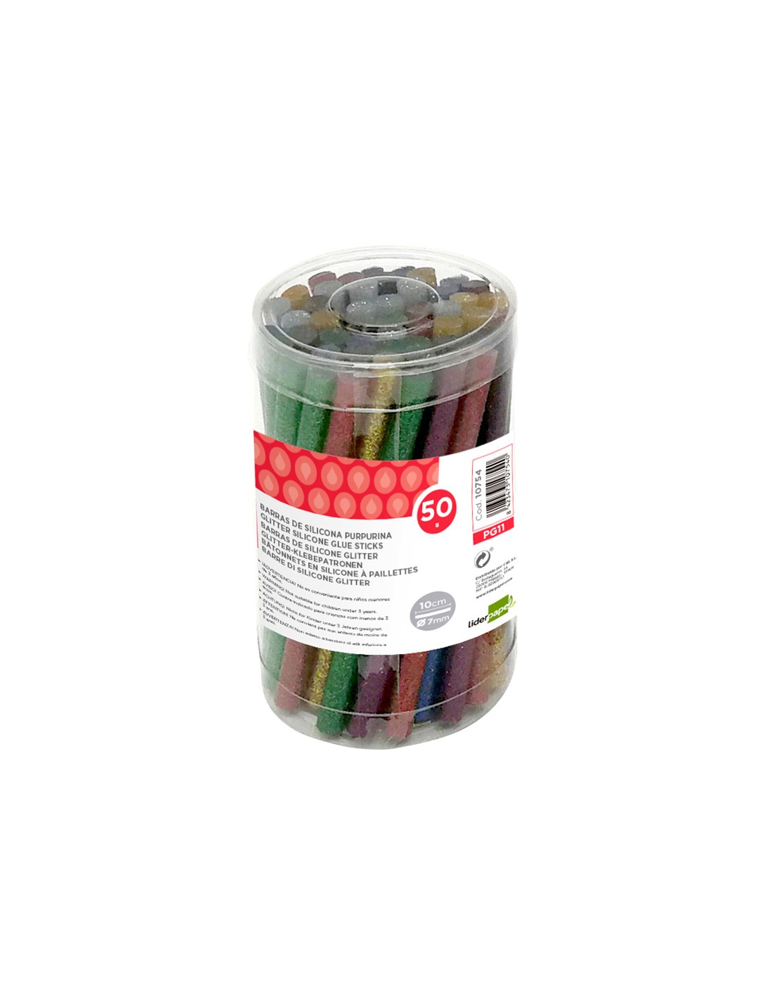 LIDERPAPELBarra termofusible purpurina liderpapel 7 mm diametro x 100 mm de alto bote 50 unidades colores surtidos
