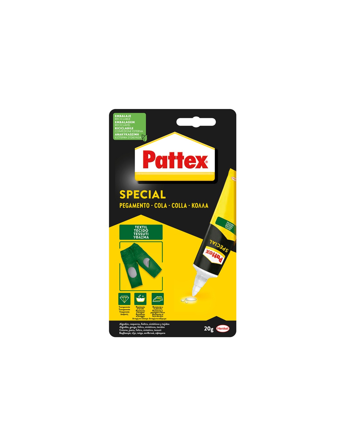 Pegamento pattex especial textil bote de 20 gr