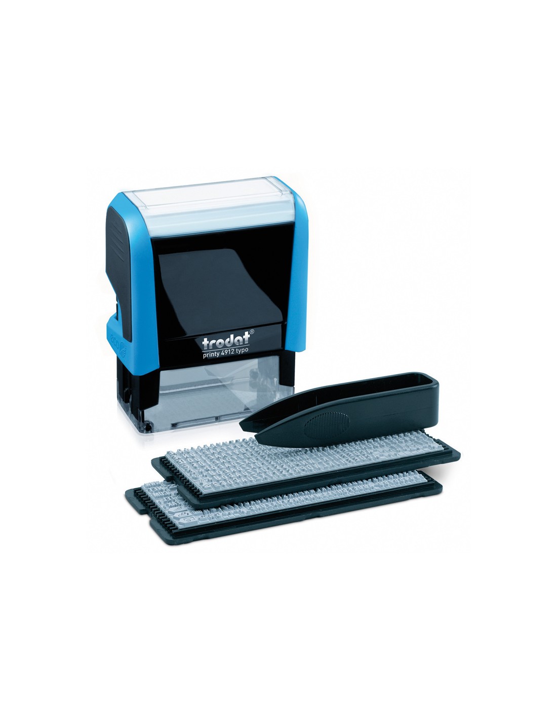 Sello para componer su propio texto. Entintaje automático. Medidas de la placa 47 x 18 mm. Placa rectangular. Contiene 1 juego de tipos de 3 mm y otro de 4 mm. Con almohadilla azul. Presentación en blíster. Letra mayúscula.