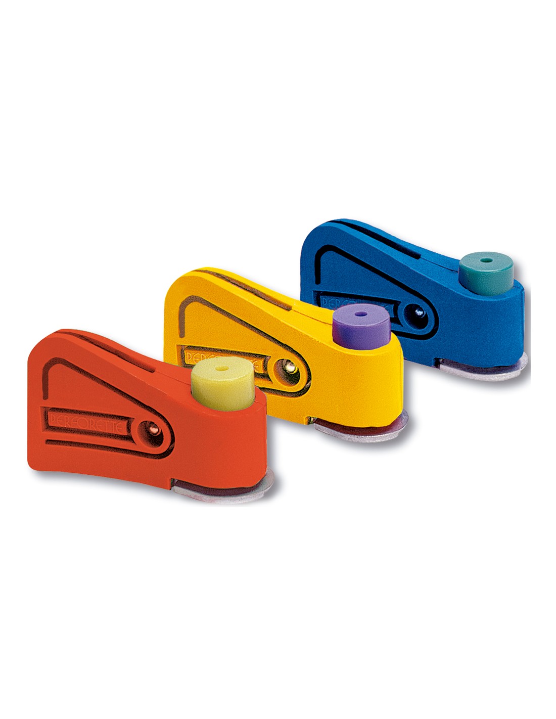 Perforador con cuerpo de plástico y punzón de metal. Práctico sistema que perfora en el lugar exacto. Longitud de la base 65 mm.