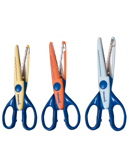 Indicada para manualidades. Tres tipos de corte surtidos corte en zig-zag, corte en ondas pequeñas y corte en ondas grandes. Corta papel, fotos, tejidos, etc. Longitud 16 cm. SE RECOMIENDA UTILIZAR LAS TIJERAS BAJO SUPERVISION DE UN ADULTO