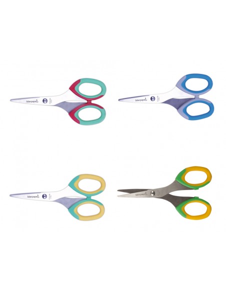 Tijera con mango extrasuave y hoja de acero inoxidable. Apta para TODO TIPO DE USOS. Colores surtidos. Longitud 13,5 cm. SE RECOMIENDA UTILIZAR LAS TIJERAS BAJO LA SUPERVISION DE UN ADULTO.