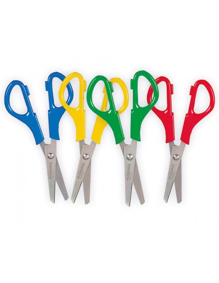 Tijera para zurdos con puntas redondeadas antipinchazos y hoja de acero inoxidable. Mango de plástico agradable al tacto. Apta para TODO TIPO DE USOCorta papel, cartón, fotos, tela, etc. Colores surtidOS. LONGITUD 13,5 CMSE RECOMIENDA UTILIZAR LAS TIJERAS BAJO LA SUPERVISIÓN DE UN ADULTO.