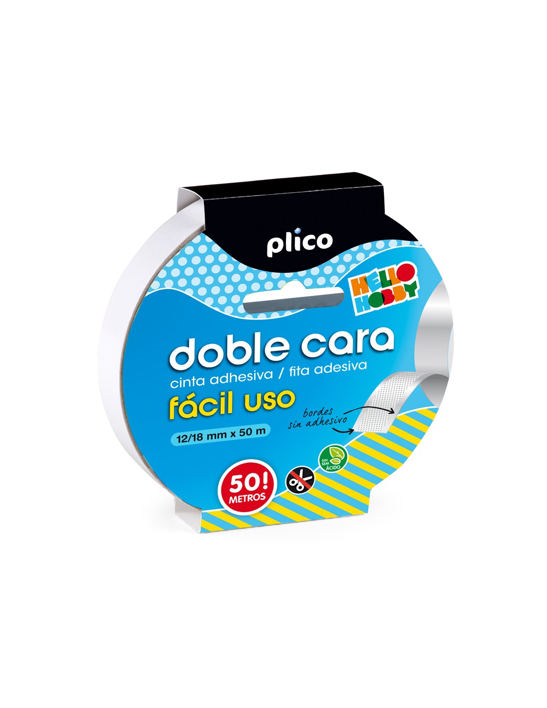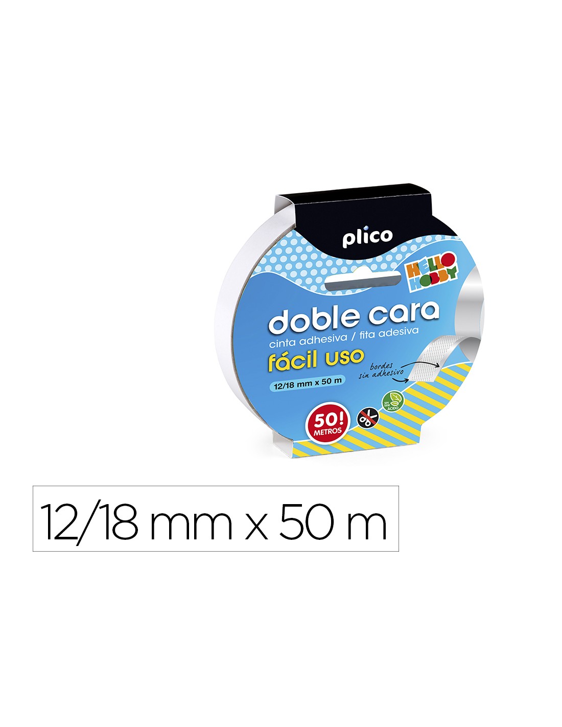 Cinta adhesiva plico doble cara facil uso 50 mt x 12/18 mm