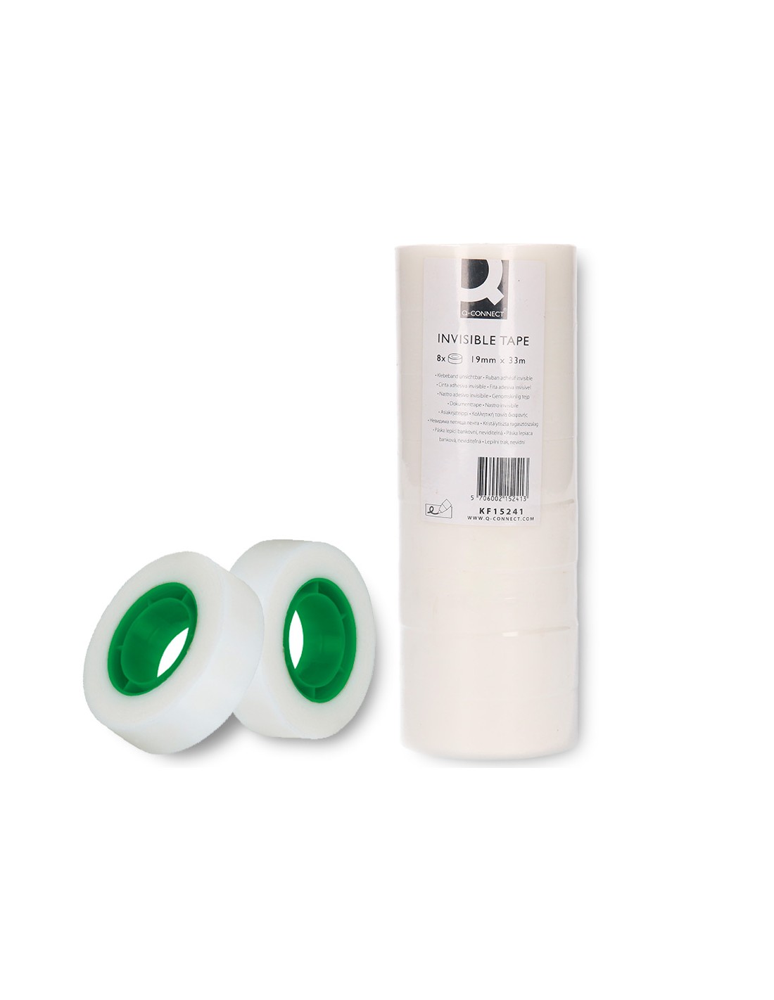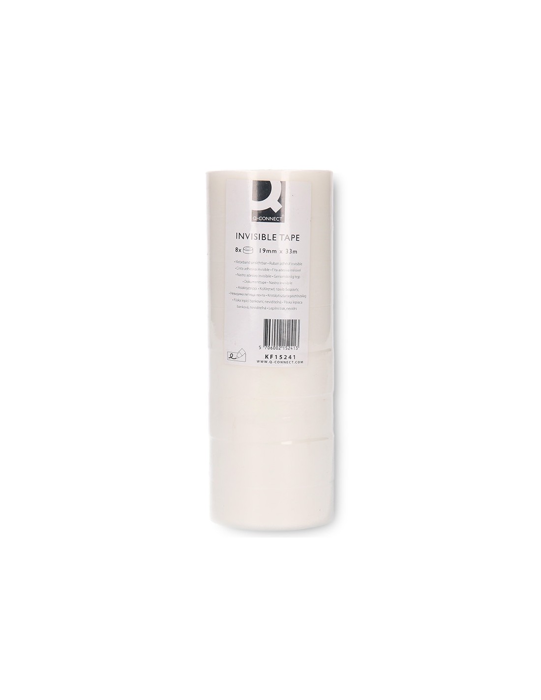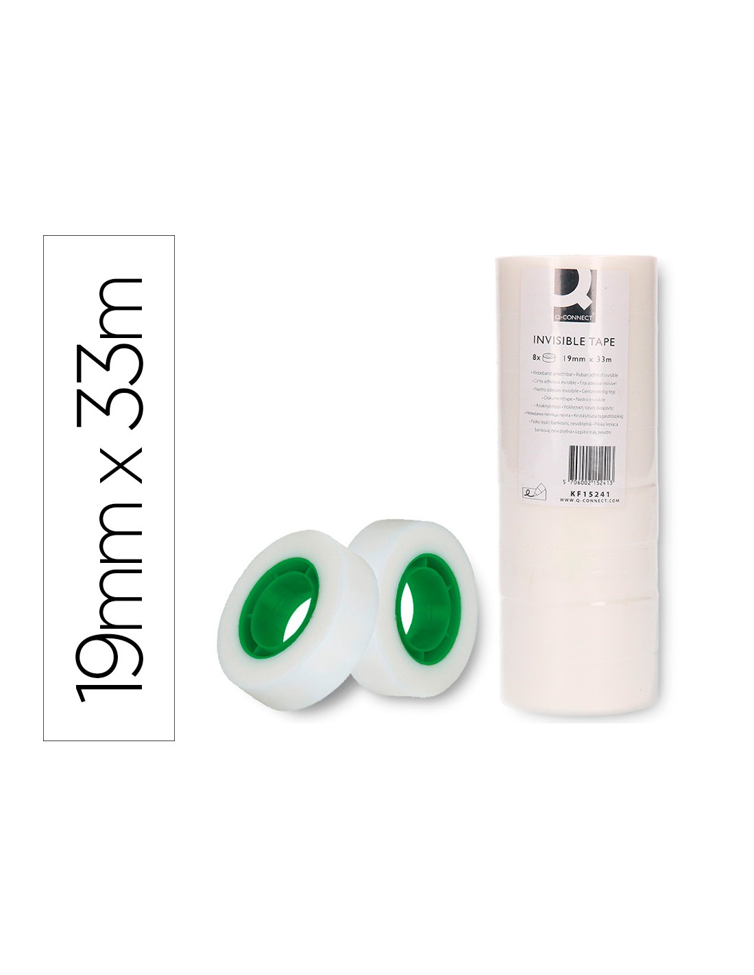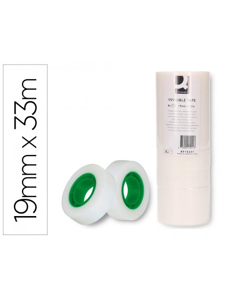 Cinta adhesiva q-connect invisible 33 mt x 19 mm pack de 8 unidades