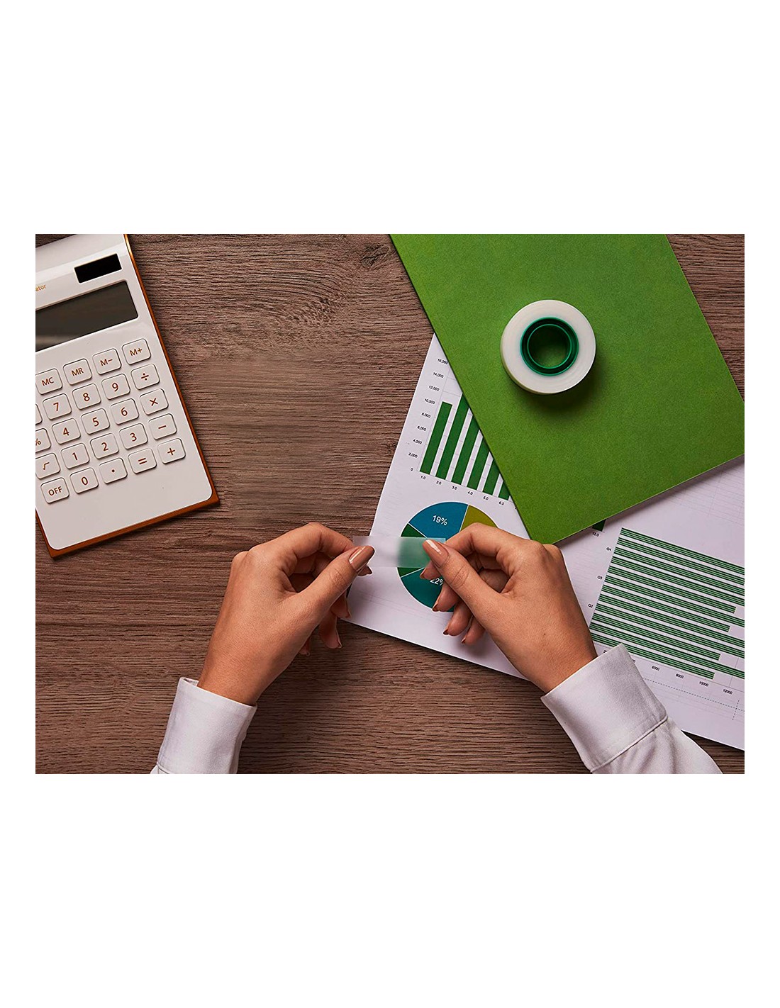 Cinta invisible incluso con fotocopias. Permite escribir sobre ella. Fácil de cortar. No amarillea. Medidas 33 m x 19 mm.