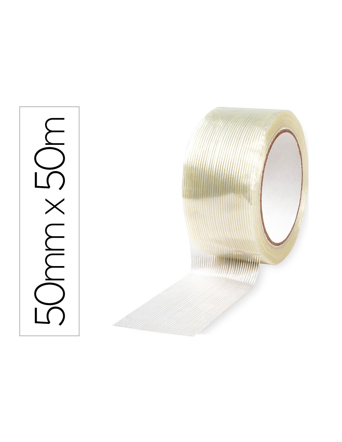 Cinta adhesiva q-connect monofilamentos transparente 50 mt x 50 mm para embalaje