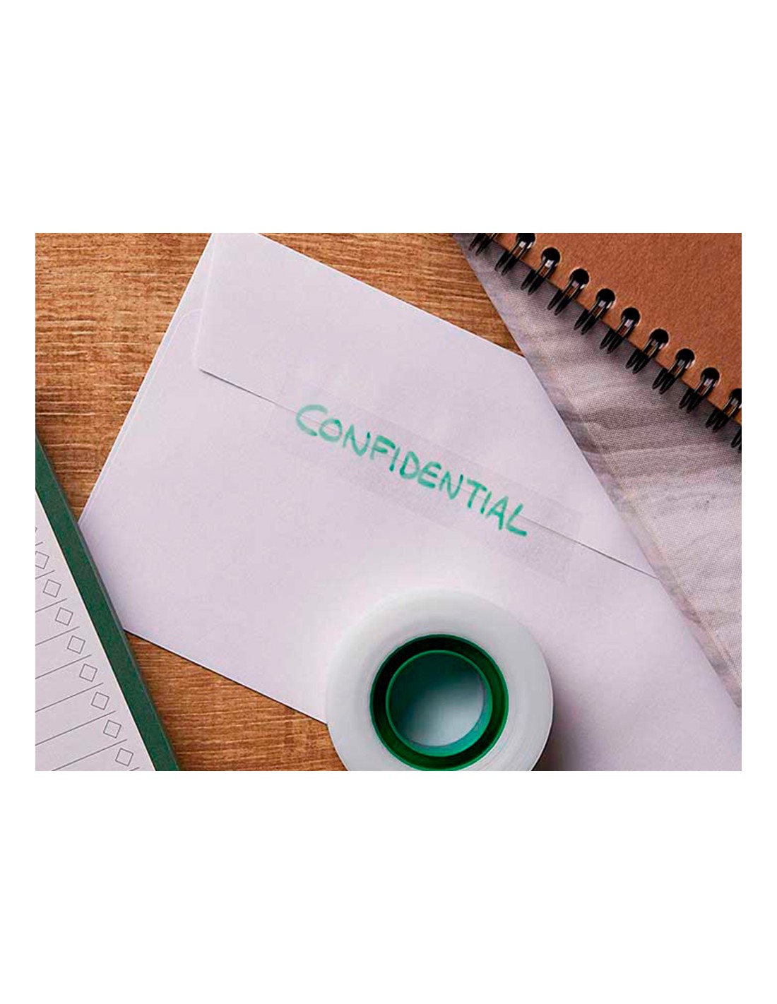 Cinta invisible en caja. Invisible tras su aplicación, incluso al fotocopiar. Se puede escribir sobre ella. Fácil de desenrollar, cortar y manejar. Excelente envejecimiento, no amarillea con el paso del tiempo. No se despega y no transfiere el adhesivo.