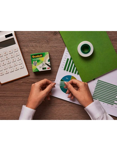 Cinta adhesiva scotch magic invisible 33 mt x 19 mm pack de 8 unidades