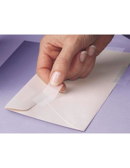 Cinta invisible en caja. Invisible tras su aplicación, incluso al fotocopiar. Se puede escribir sobre ella. Fácil de desenrollar, cortar y manejar. Excelente envejecimiento, no amarillea con el paso del tiempo. No se despega y no transfiere el adhesivo.