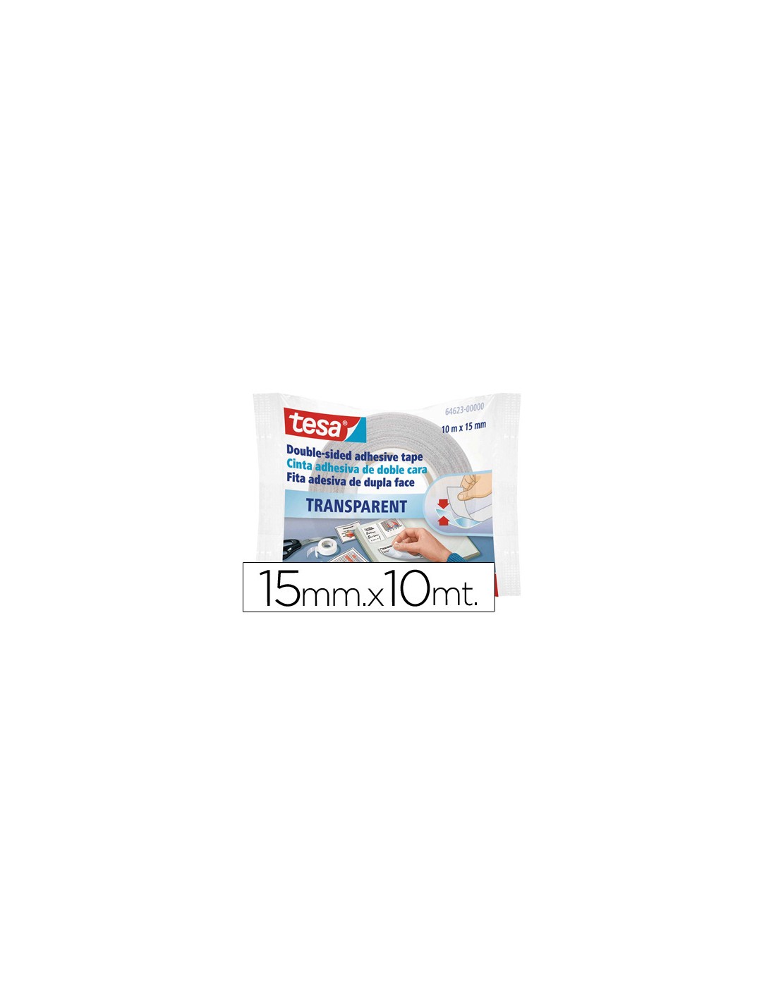 Cinta adhesiva tesa doble cara transparente 10 mt x 15 mm