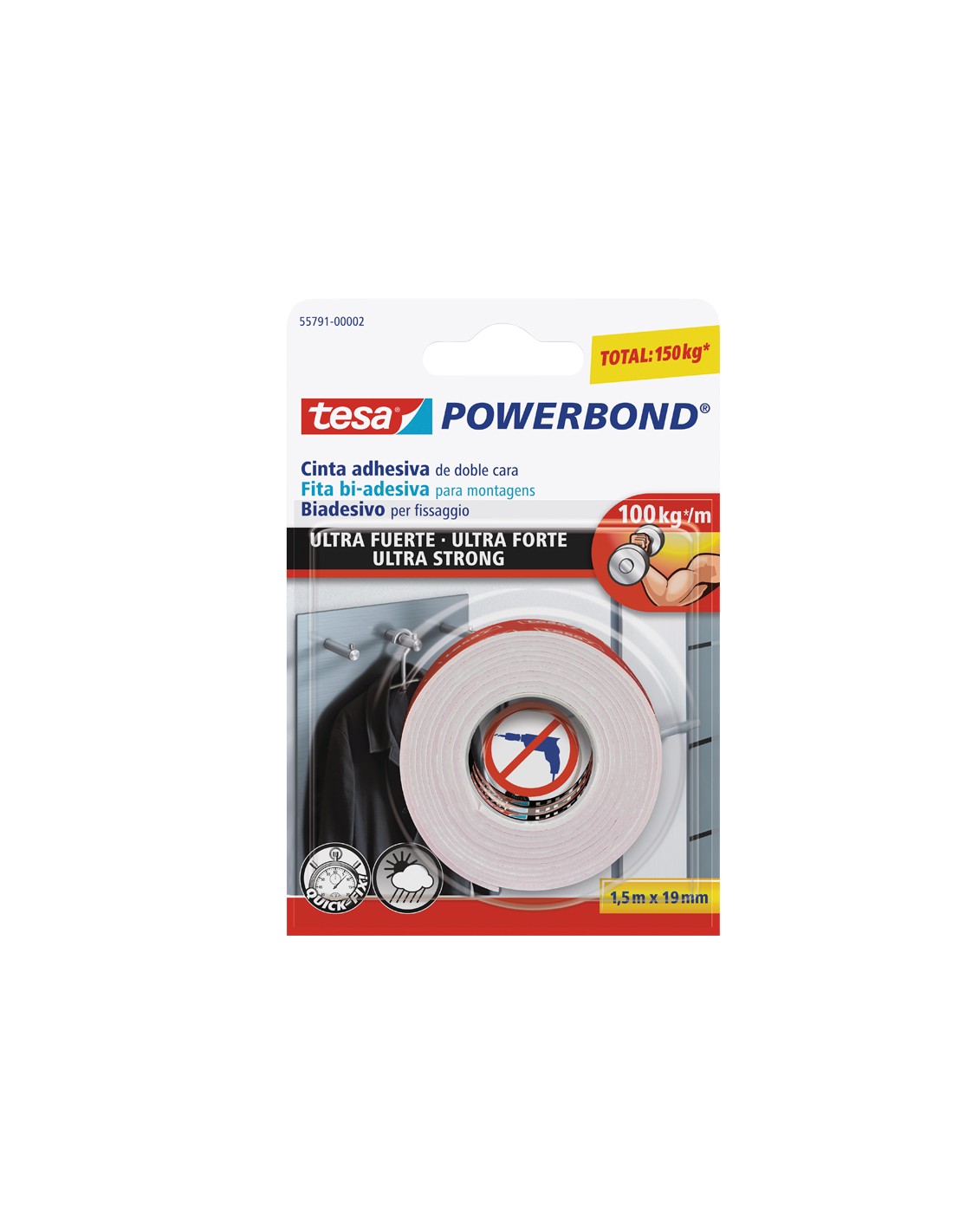 Cinta adhesiva tesa doble cara ultra strong extrafuerte para interior y exterior 1,5m x19mm