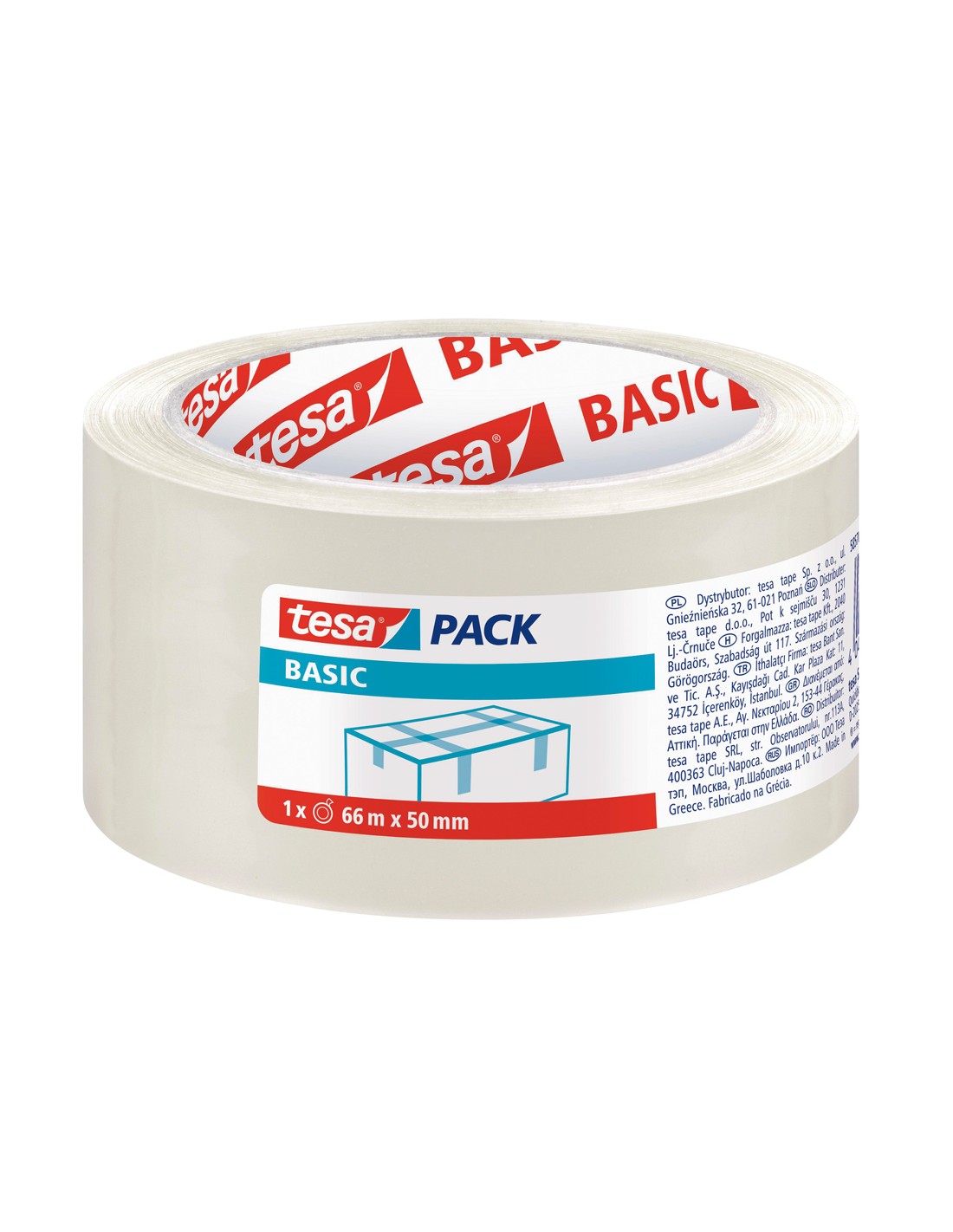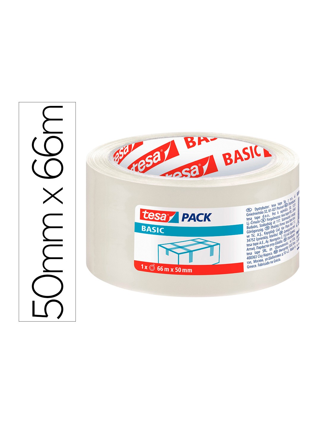 Cinta adhesiva tesa transparente basic 66 mt x 50 mm para embalaje
