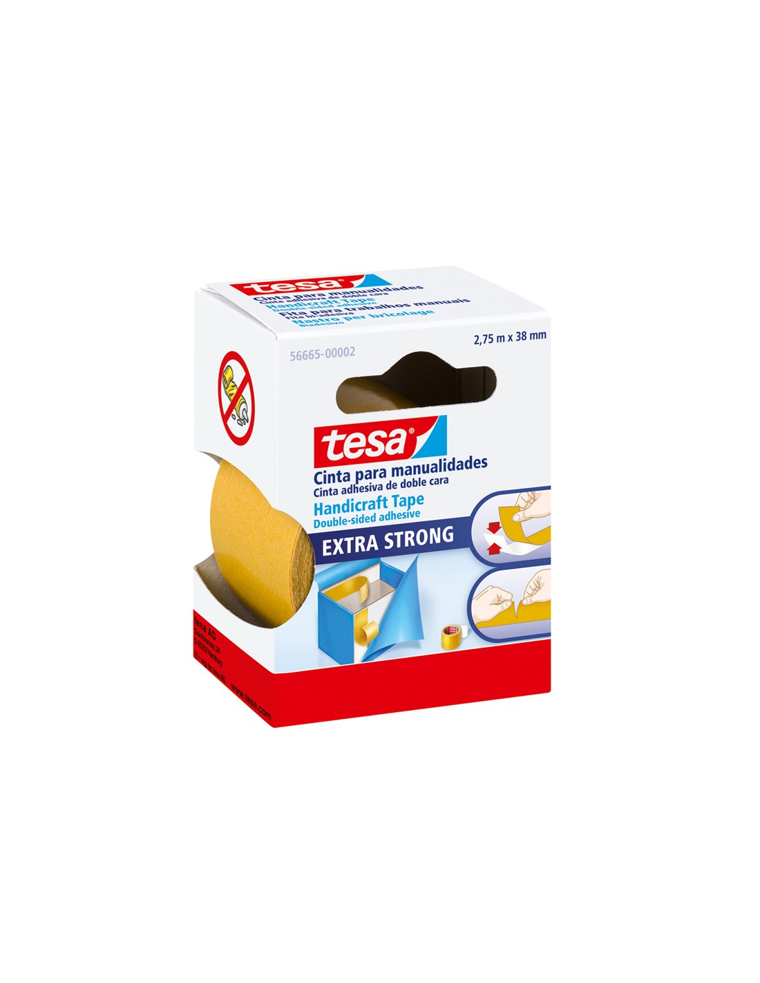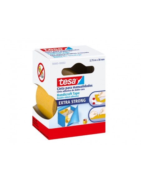 Con adhesivo de doble cara, extrafuerte, especial para manualidades. Medidas 2,75 m x 38 mm.